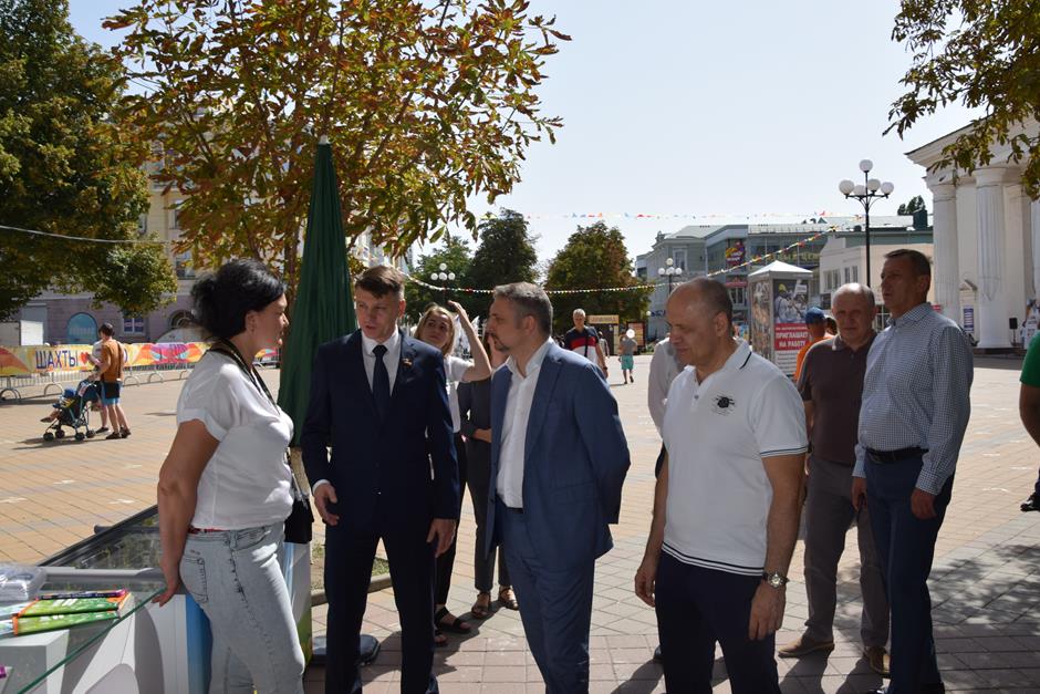 Улица Шевченко стала центром праздничного притяжения и в воскресенье 28 августа. Выставку предприятий и банков «Шахты — ПРОМО», собравшую порядка 100 участников, посетил замминистра экономического развития Ростовской области Сергей Кононенко. Вместе с главой Администрации города Андреем Ковалевым, и.о. председателя городской Думы города Шахты Константином Корнеевым, председателем Общественной палаты города Александром Скориковым, членом Общественной палаты города, руководителем шахтинского отделения РОО «ОПОРА РОССИИ» Ириной Сафроновой он ознакомился с экспозиционными стендами и представленной продукцией. Шахтинцы и гости города также смогли отведать и приобрести разнообразные вкусности в рамках гастрономического фестиваля, посетить фотовыставку «Арбат Фест» и ярмарку «Город Мастеров».