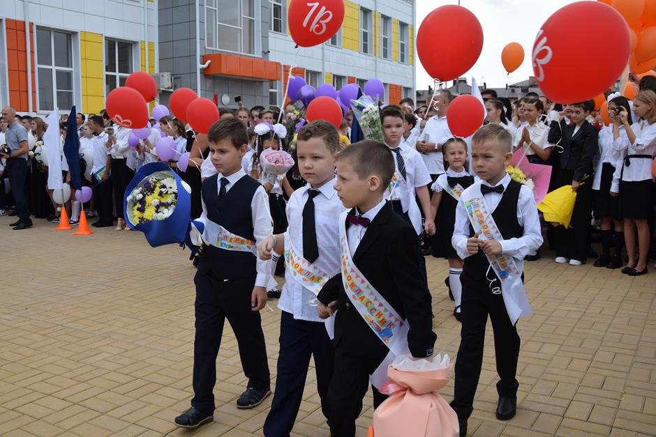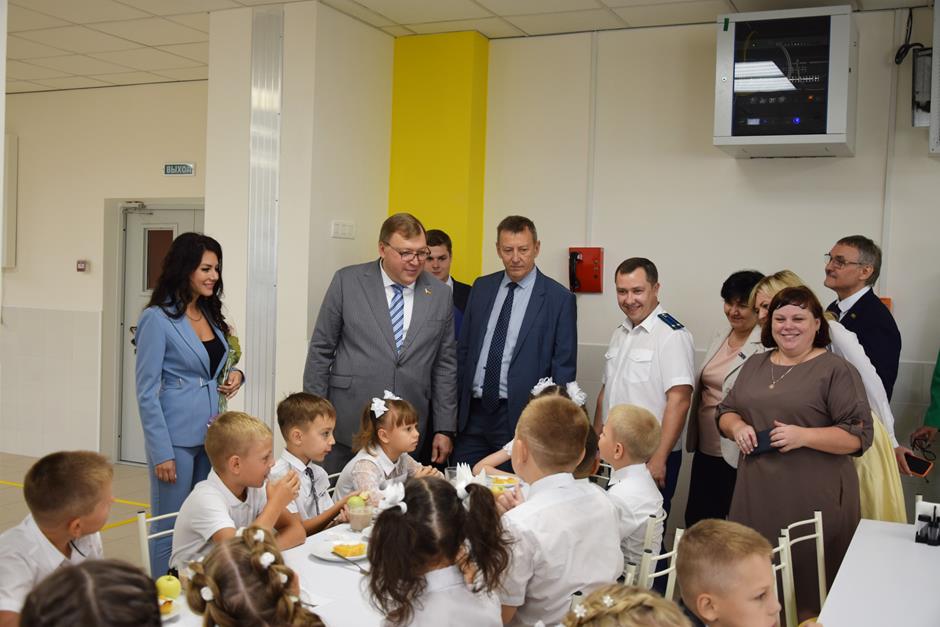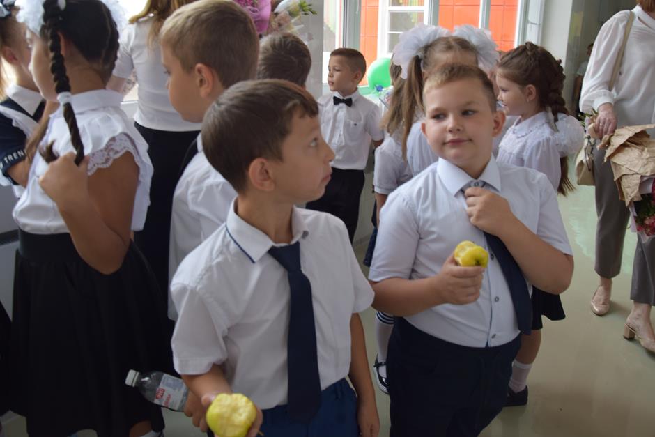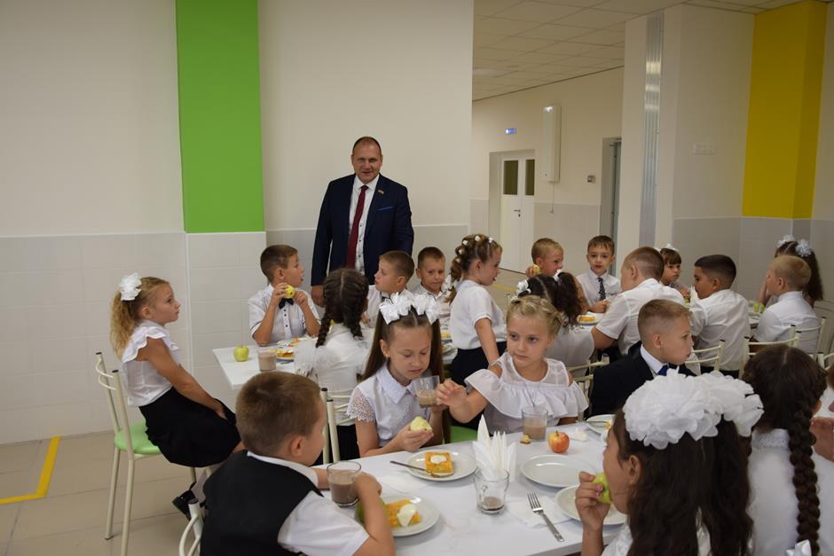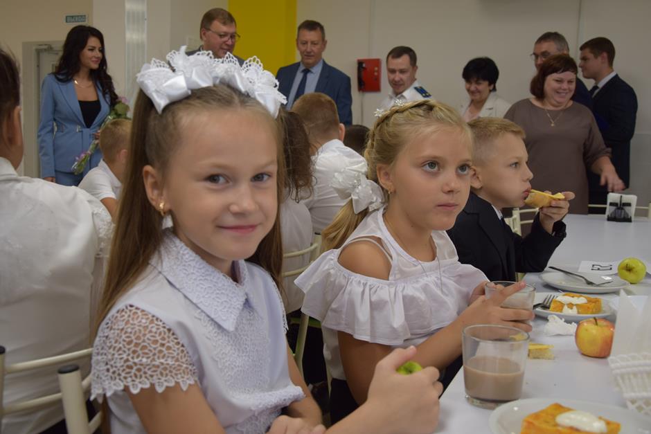 Первый школьный звонок стал призывом перерезать традиционную красную ленточку. Путь в новую школу открыт! Бойким, многоголосым, нескончаемым ручейком за первоклашками потянулись в здание «новоселы». Почетные гости также проследовали по кабинетам и помещениям образовательного заведения, заглянув и в столовую, где уже завтракали ребята.