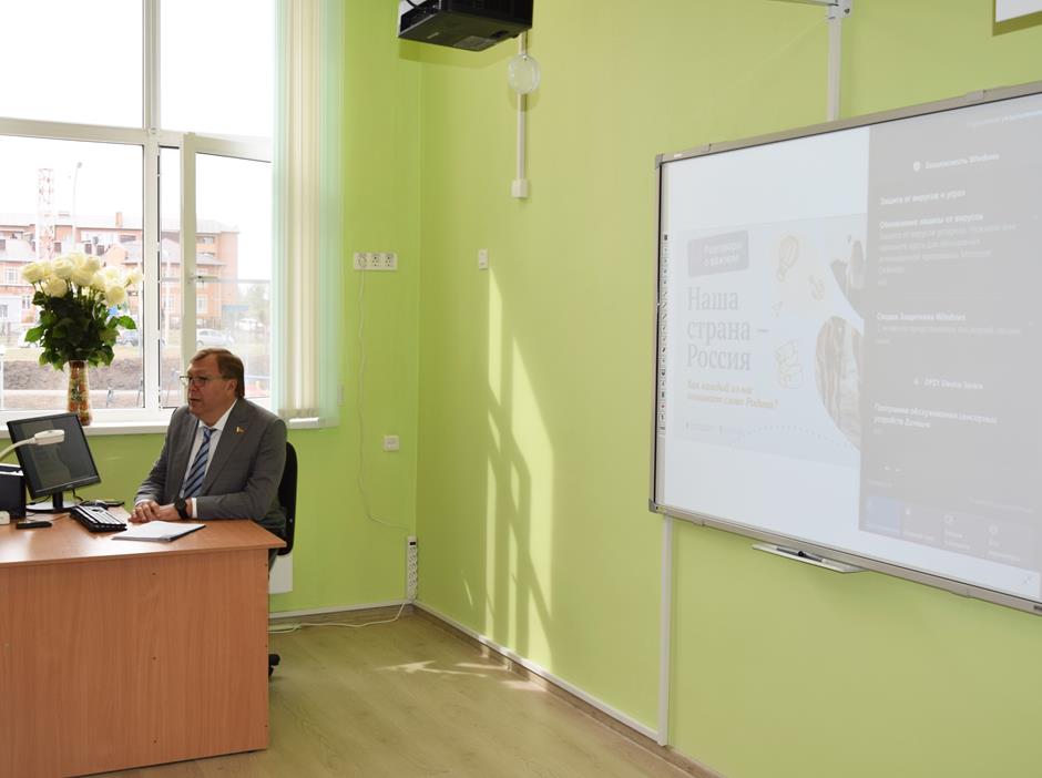 Смогли пообщаться со спикером донского парламента сегодня и ученики 9 класса. Для них Александр Валентинович провел урок на тему «Наша страна – Россия». Вспомнили важные исторические вехи развития государства-освободителя, говорили о любви к Родине, патриотизме и преемственности поколений, необходимости знать и помнить о событиях прошлого, чтобы объективно оценивать происходящее в стране и мире сегодня, возможностях и условиях самореализации, которые созданы сегодня для молодежи – строителей уверенного завтра и успешного будущего сильной, крепкой, мощной и непобедимой России.