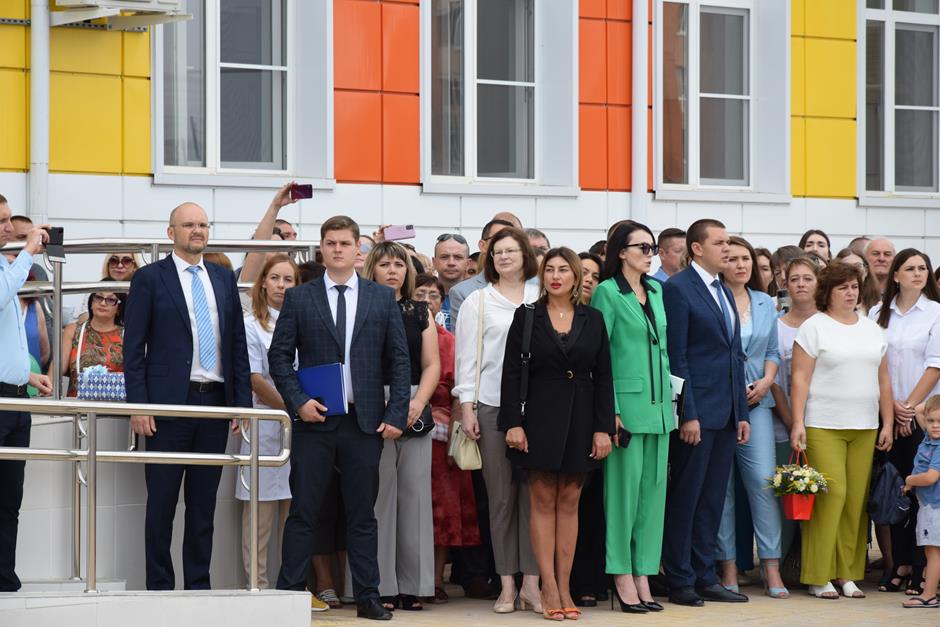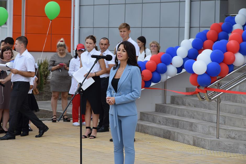 Собравшихся приветствовали также депутат Государственной Думы России Екатерина Стенякина, заместитель министра образования РО Тамара Шевченко, и.о. главы Администрации города Алексей Тушминцев, председатель городской Думы – глава города Шахты Андрей Горцевской. С благодарностью за красивый, современный объект и напутствием перед началом занятий обратилась директор школы Ольга Бакурова. Выступили перед собравшимися и ученики.
