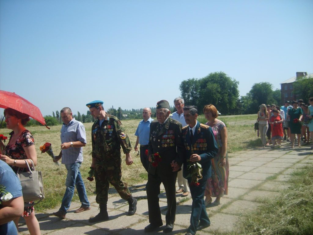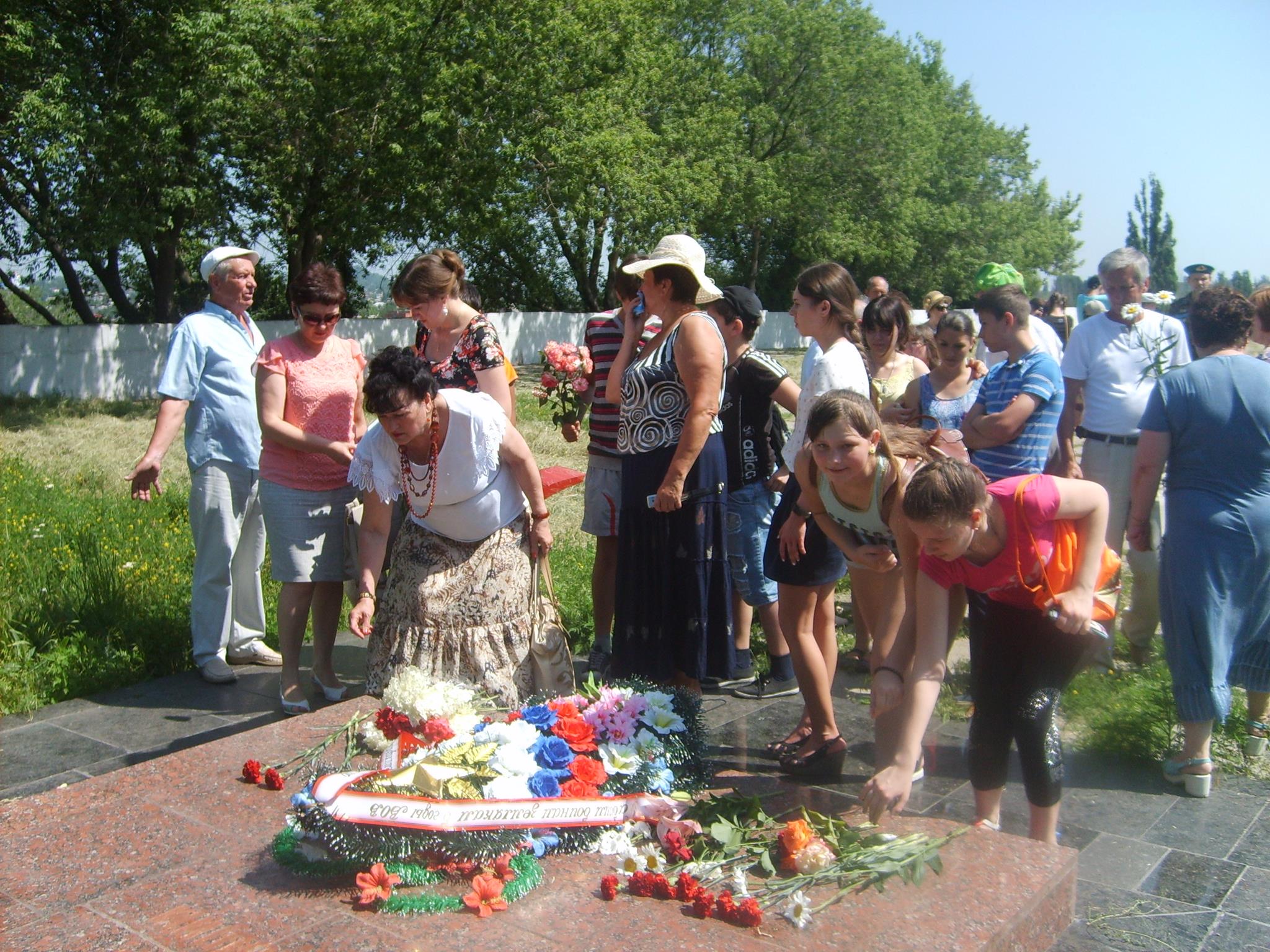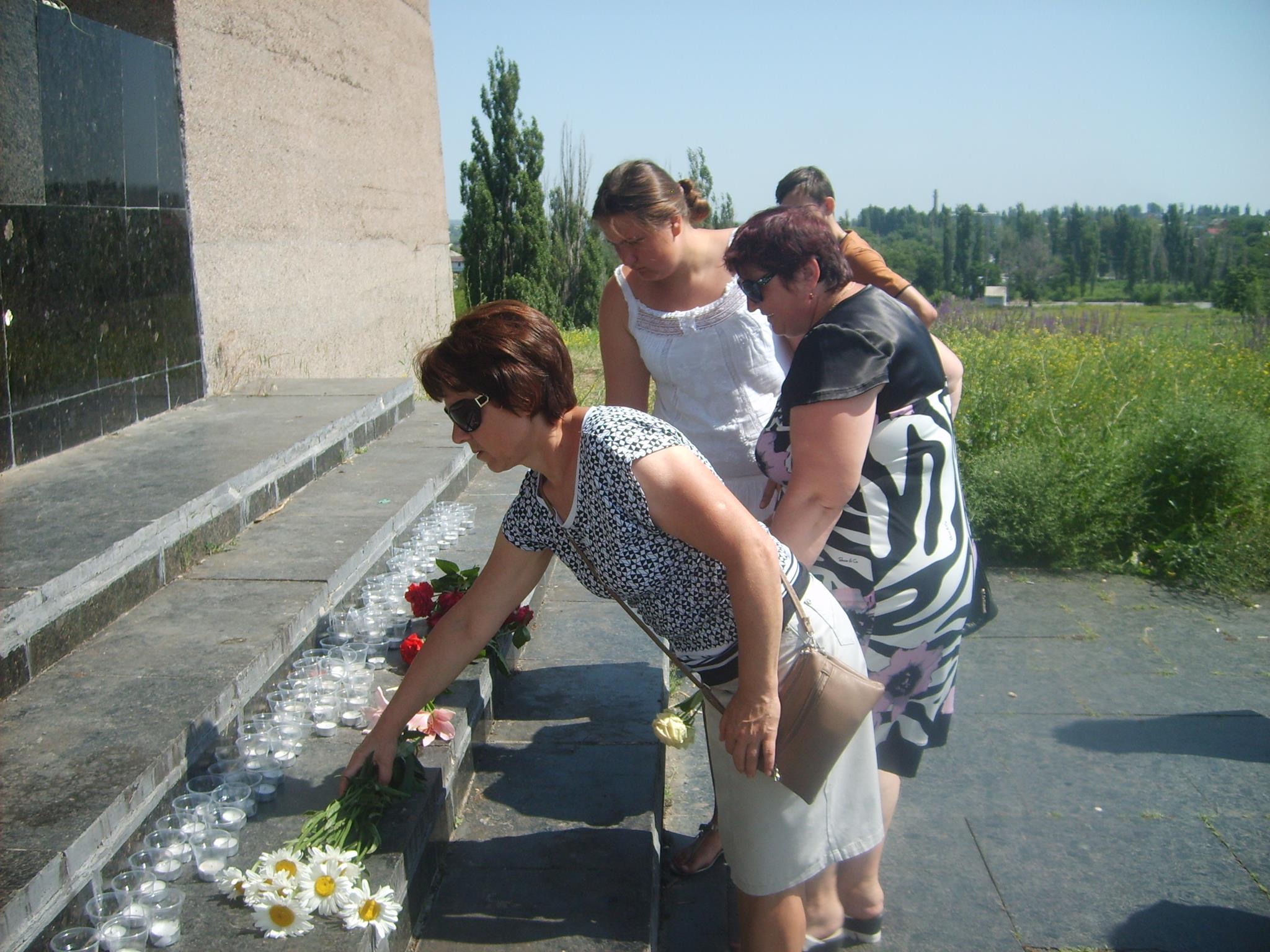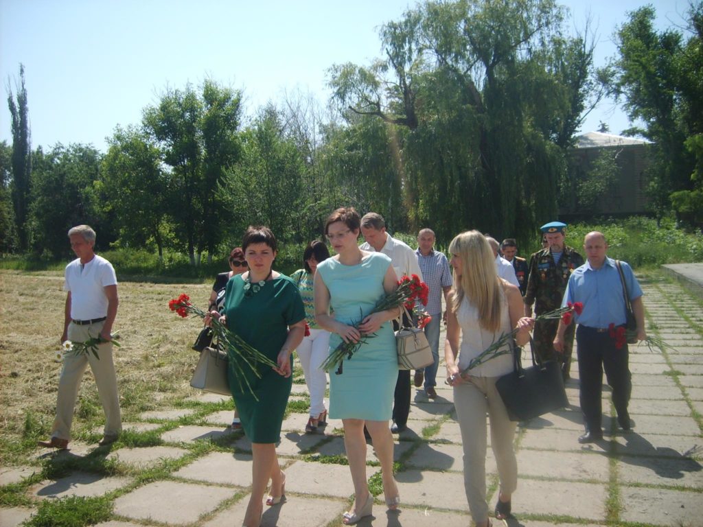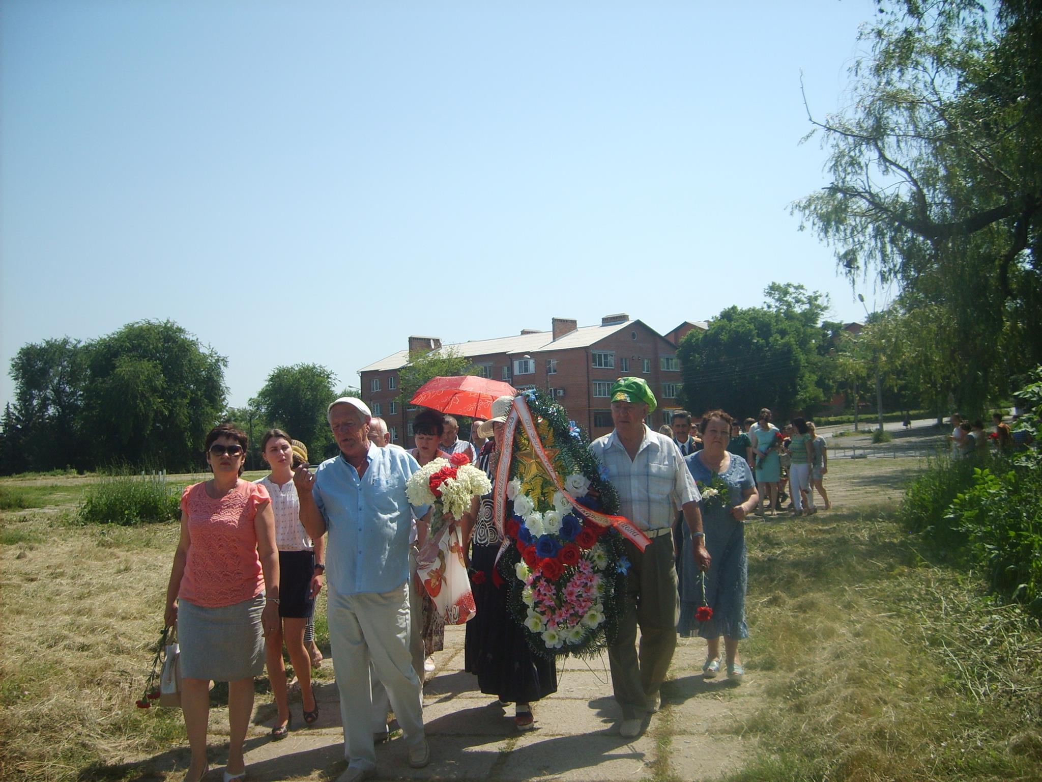 В день памяти и скорби в город Шахты прибыла делегация из города Семикарокорска, чтобы вместе с шахтинцами почтить память своих земляков, которые в период оккупации были уничтожены фашистами, сброшены в шурф шахты им.Красина. Также к мемориалу пришли представители городской Думы г.Шахты, учителя и ученики школы №27 и ДЮСШ №5, сотрудники клуба им.Л.Красина, жители поселка. Не было торжественных речей, все прошло тихо. И в этом молчании люди выражали свою скорбь. А после возложения цветов в музейной комнате клуба была проведена экскурсия для красинцев и гостей города, им рассказали о героях-шахтинцах, о жертвах оккупации, о создании мемориала.