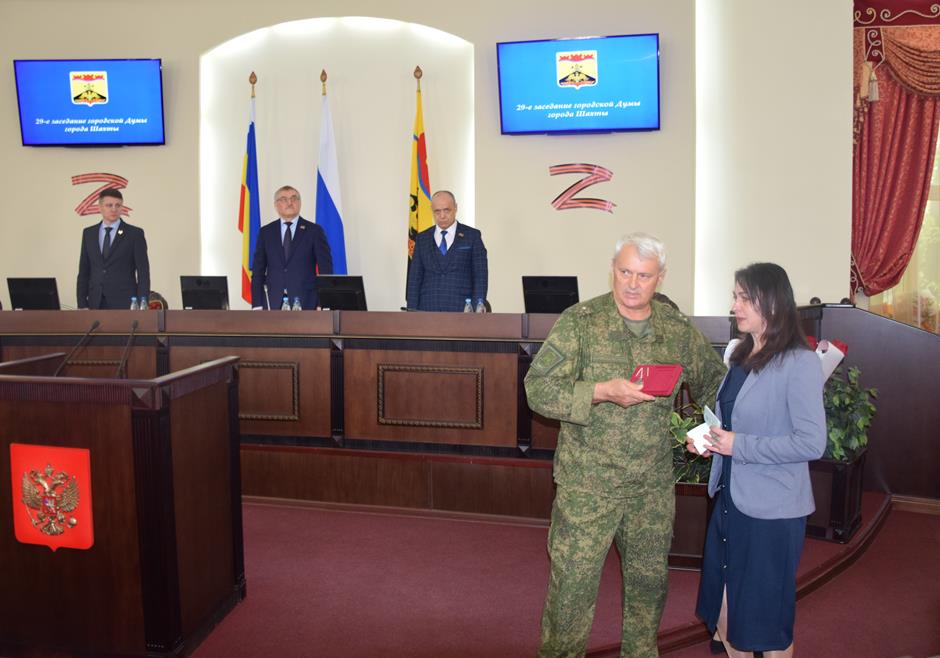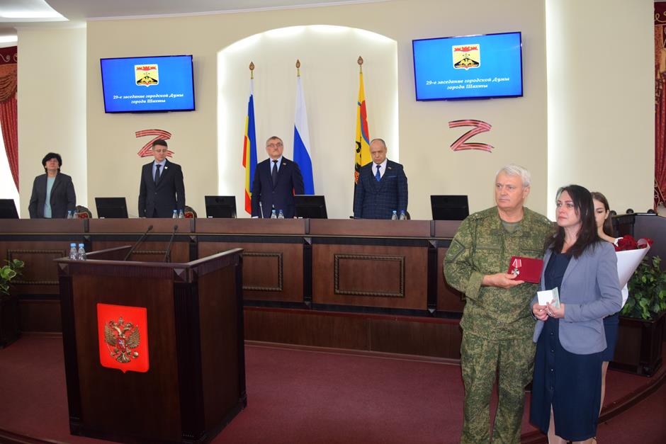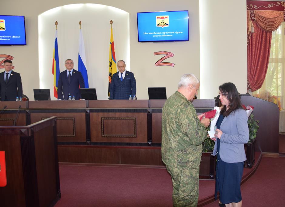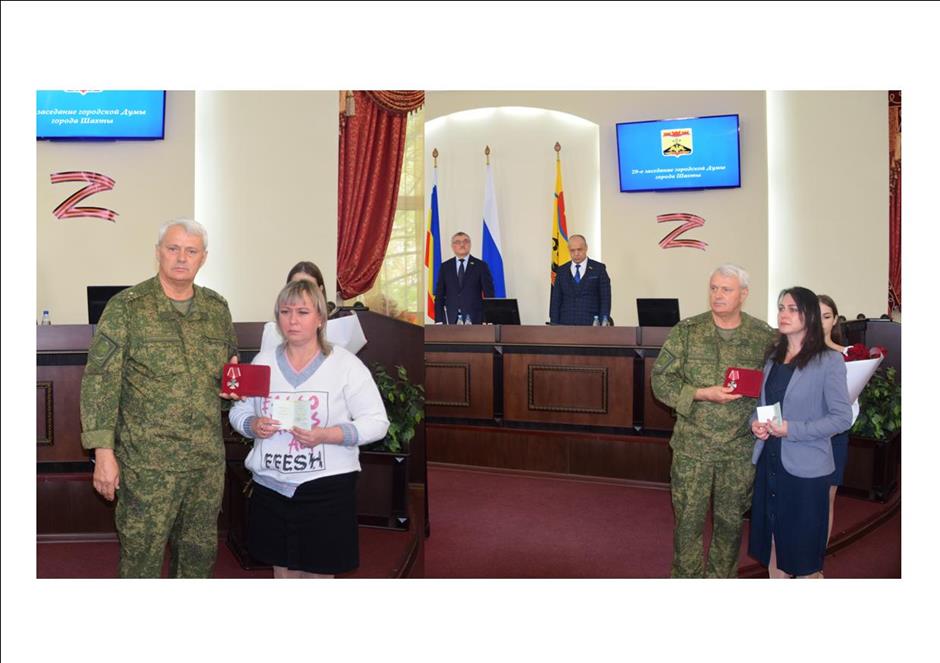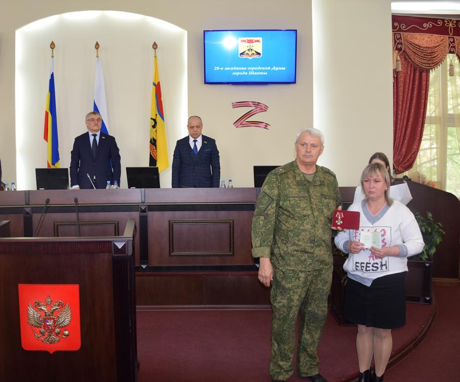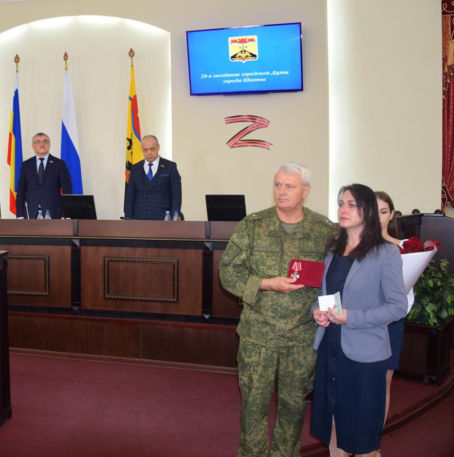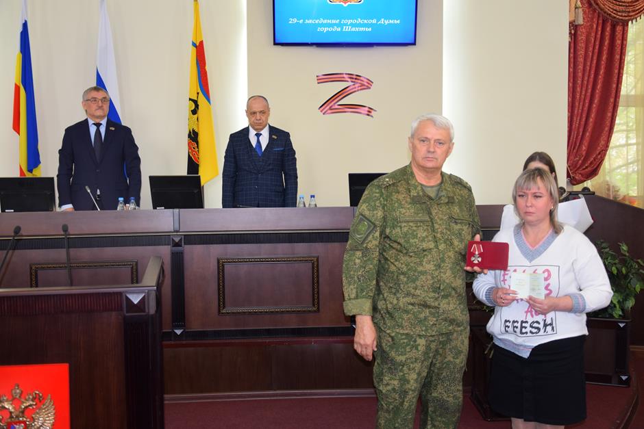 На 29-ом заседании городской Думы родным шахтинских героев, погибших при исполнении воинского долга, вручили Ордена Мужества. Указом Президента Российской Федерации за отвагу и самоотверженность посмертно награждены старший сержант Петренко Петр Васильевич и рядовой Догаев Никита Михайлович. В борьбе за мир без нацизма, за свободу граждан, безопасность России они отдали самое дорогое… Петру Васильевичу Петренко был 41 год… У него остались 20-летняя дочь и сын 11-ти лет. 28-летний Никита Догаев жениться не успел, но стал примером героизма и доблести для своего младшего брата – тоже защитника Родины, для всех нас и будущих поколений россиян.