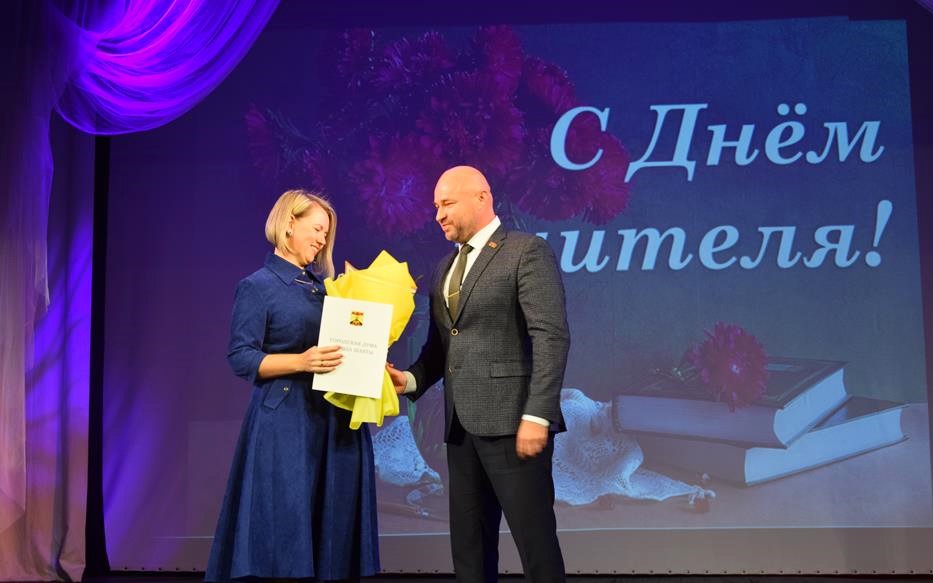 Поздравления от председателя городской Думы – главы города Шахты Андрея Горцевского и депутатского корпуса передал председатель комитета городской Думы Константин Чередниченко. Он отметил важность и ответственность благородной учительской миссии, выразил признательность педагогическому сообществу за труд и, пожелав здоровья, благополучия, новых профессиональных успехов и достижений, вручил Благодарственные письма городской Думы. Их, в связи с празднованием Международного Дня учителя, удостоены: