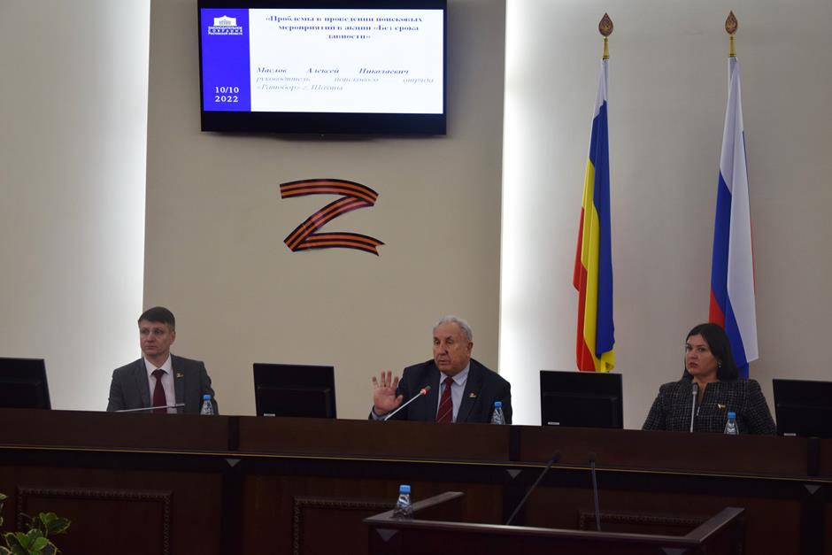 Местом проведения общественных обсуждений законодательных инициатив в сфере увековечения памяти погибших защитников Отечества донские парламентарии выбрали город Шахты. В мероприятии, организованном Законодательным Собранием Ростовской области, приняли участие депутат Государственной Думы России Екатерина Стенякина, заместитель председателя ЗСРО Вячеслав Василенко, председатель комитета ЗСРО по взаимодействию с общественными объединениями, молодежной политике, физической культуре, спорту и туризму Ирина Жукова, председатель комитета ЗСРО, председатель комитета ЗСРО по делам военнослужащих, ветеранов военной службы, гражданской обороне и чрезвычайным ситуациям Григорий Фоменко, представители военного комиссариата Ростовской области, следственного управления Следственного комитета РФ по РО, руководители поисковых объединений донского края. Город Шахты представили председатель городской Думы – глава города Шахты Андрей Горцевской, глава Администрации Андрей Ковалев, председатель Общественной палаты Александр Скориков, члены ОП, представители Совета ветеранов, поискового отряда «Ратобор» и поискового объединения «Исток».