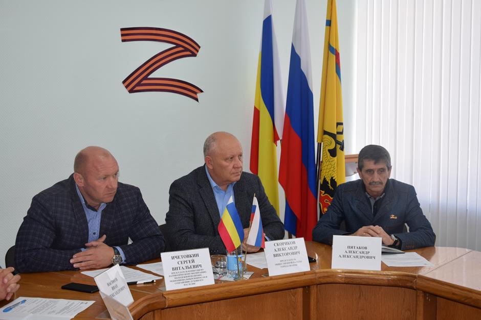 В заседании комиссии Общественной палаты города по патриотическому воспитанию, молодежной политике, межнациональным вопросам и сохранению духовного наследия приняли участие председатель ОП Александр Скориков, и.о. директора Департамента образования Виктория Ткаченко, руководитель поискового отряда «Ратобор» Алексей Маслов.
