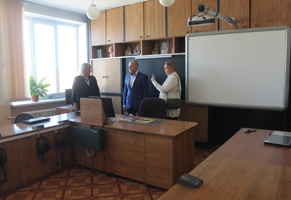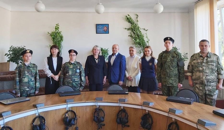 Константин Кузьмич передал для кабинета, где теперь размещена мемориальная доска в память о Юрии Ивановиче Резниченко, набор англо-русских и русско-английских словарей. Это подарок от депутата Законодательного Собрания Ростовской области Ирины Жуковой — тоже, кстати, выпускницы нынешнего лицея, который в её время был ещё школой N3.