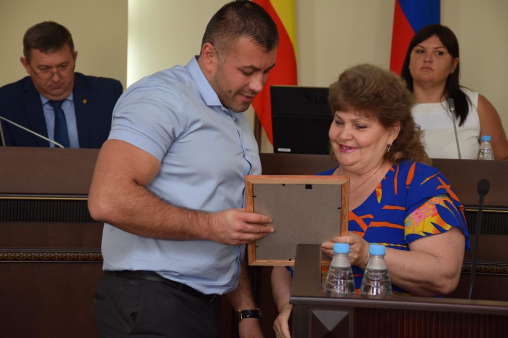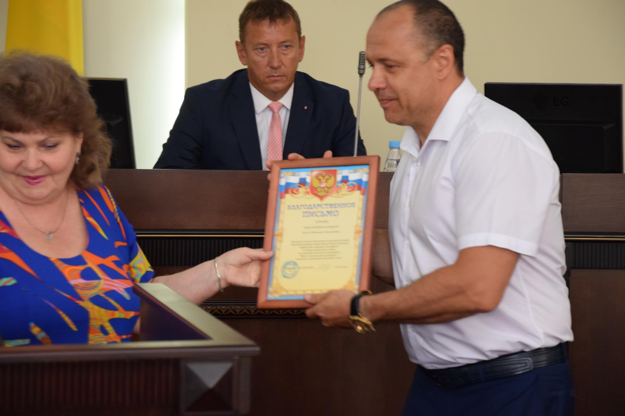 Перед рассмотрением основной повестки, слово предоставили председателю Шахтинской городской общественной организации Ростовской областной организации «Всероссийское общество инвалидов» Валентине Юрьевне Суховой, которая вручила Благодарственные письма депутатам А.Л.Гершману, А.А.Рябову, Р.Н.Гусеву, Д.Ю.Приходько, К.К.Корнееву — за организацию финансовой помощи для проведения тематического мероприятия «Память о Великой Победе бессмертна», посвященного празднованию Дня Победы.