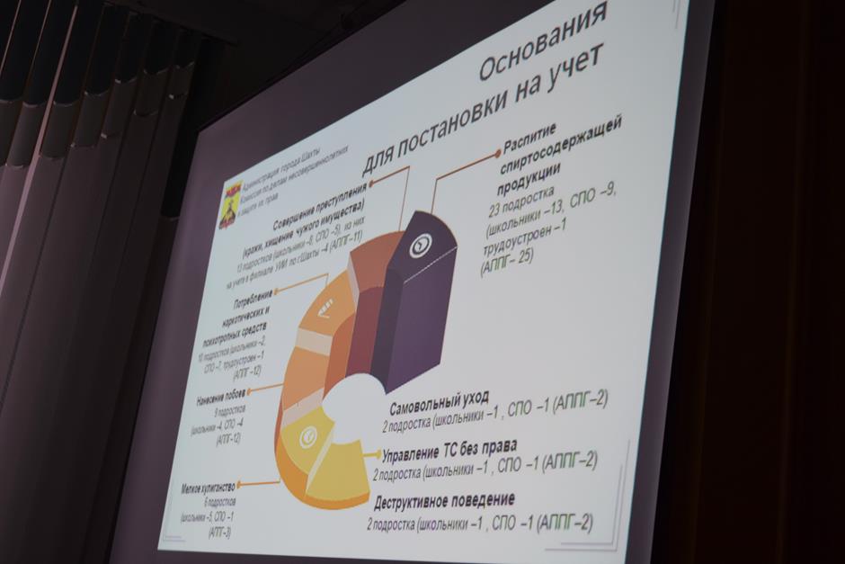 Соответствующими полномочиями наделены подразделения по делам несовершеннолетних УМВД РФ по г. Шахты, филиал по г. Шахты ФКУ УИИ ГУФСИН России по РО, департаменты социальной сферы, отдел по молодежной политике, Центр занятости населения, общественные организации. Координирующую функцию обеспечивает коллегиальный орган – комиссия по делам несовершеннолетних и защите их прав Администрации города Шахты. Рассмотрено ею за 9 месяцев 2022 года 562 дела об административных правонарушениях: в том числе 70 — на несовершеннолетних. Состоит на учете КДНиЗП 60 юных шахтинцев (36 поставлено в этом году). Основания разные: совершение административного правонарушения, общественно-опасного деяния до достижения возраста 14 лет, преступления, распитие спиртных напитков, употребление наркотических средств, психоактивных, психотропных, токсических веществ. Снято с учета 44 человека, половина из них – в связи с исправлением. Больше года состоят на учете КДНиЗП 9 несовершеннолетних – они наиболее социально уязвимы, требуют особого подхода к перевоспитанию, предоставлению психологической поддержки и оказанию помощи со стороны государства, уточнила Ольга Тхак, подробным образом рассказав о принимаемых совместными силами мерах. В их числе: проведение профилактических мероприятий и межведомственных рейдов в ночное время, развитие института «наставничества», вовлечение «трудных» подростков в социально-активную деятельность, трудоустройство несовершеннолетних и другие.