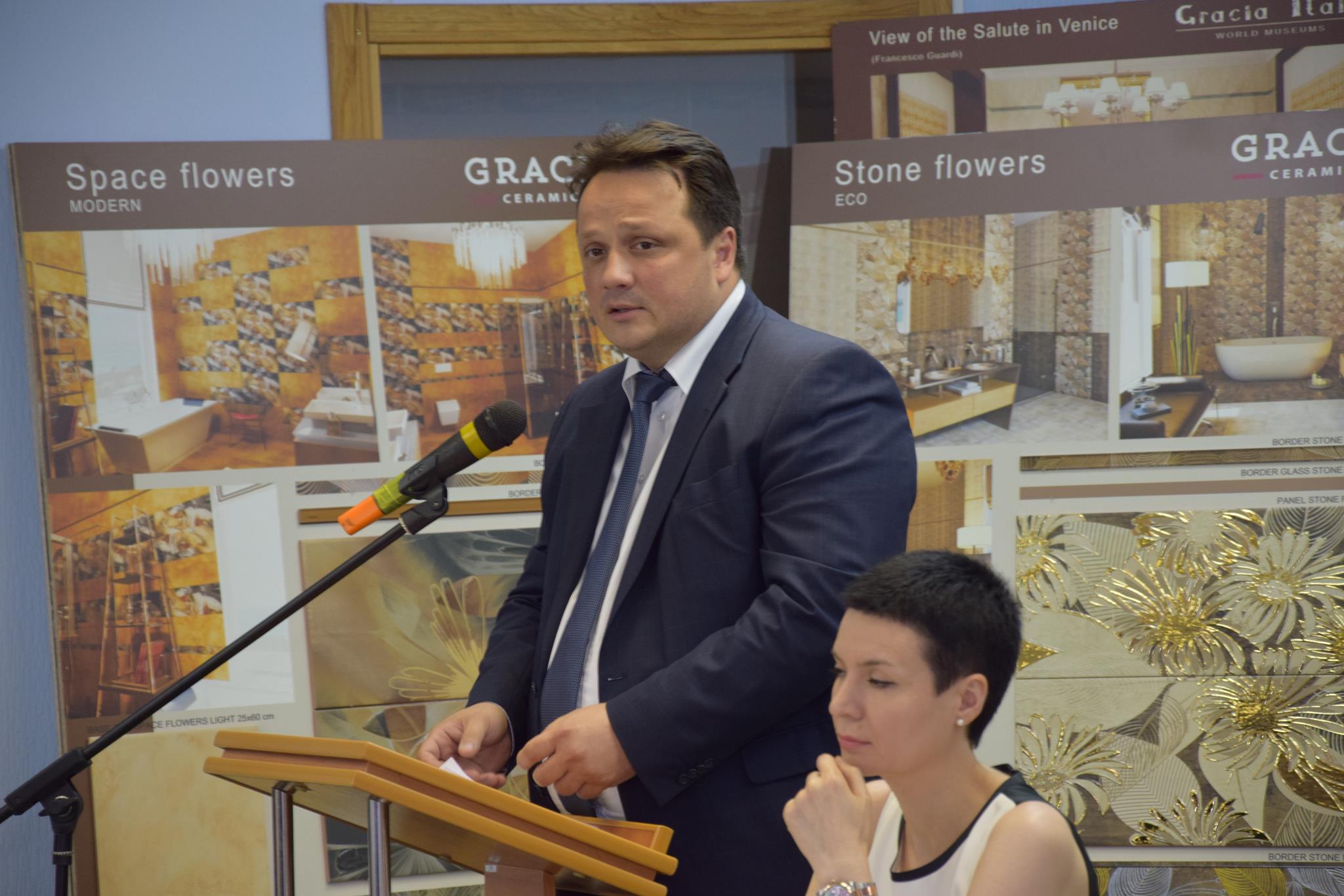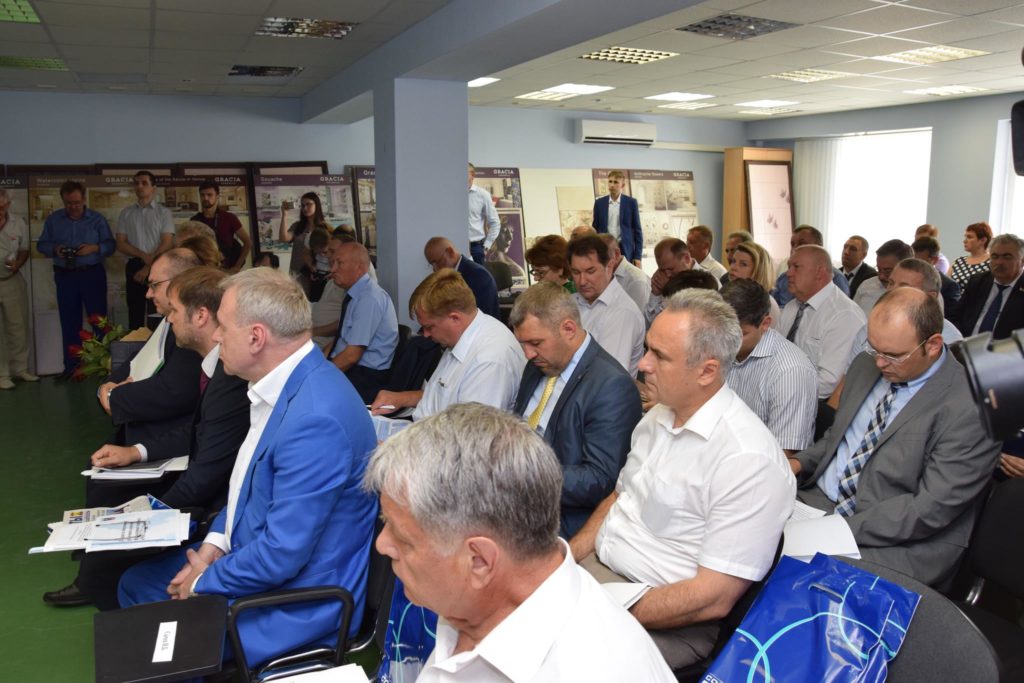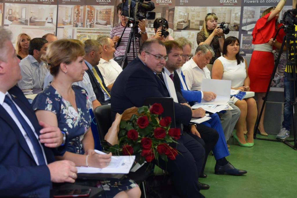 Перед началом заседания состоялась экскурсия по заводу, в ходе которой гостям показали современное производство, образцы и дизайны новых разработок плитки. А в ходе заседания с приветственным словом к присутствующим обратился генеральный директор ООО «Шахтинская керамика» Сергей Клыков, рассказал о работе и перспективах предприятия. На сегодняшний день продукция Группы компаний «Юнитайл, в которую входят ООО «Шахтинская керамика», ООО «Воронежская керамика», АО «Владимировский карьер тугоплавких глин», ООО «Параллель», ООО ТД «Стройфарфор», занимает ведущее место на рынке России. Торговые марки «Юнитайл» — «Шахтинская плитка», «Gracia Ceramica», «Маркинский кирпич» представлены в 2,5 тыс. торговых точках от Краснодара до Владивостока. Суммарная производственная мощность Группы компаний «Юнитайл» составляет по керамической плитке и керамограниту — 26 млн. кв.м./год, в том числе керамическая плитка — 14 млн. кв.м./год, керамогранит — 12 млн. кв.м./год. Сергей Клыков рассказал о том, что на Российском рынке они занимают сегодня второе место по производству продукции, цель — выйти на первое место! И условия для этого имеются, прежде всего из-за наличия собственной сырьевой базы и разработки собственных технологий, позволяющих отказаться от импортных составляющих при производстве плитки и керамогранита.