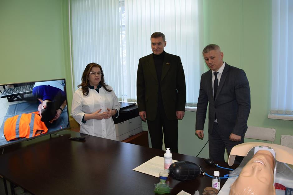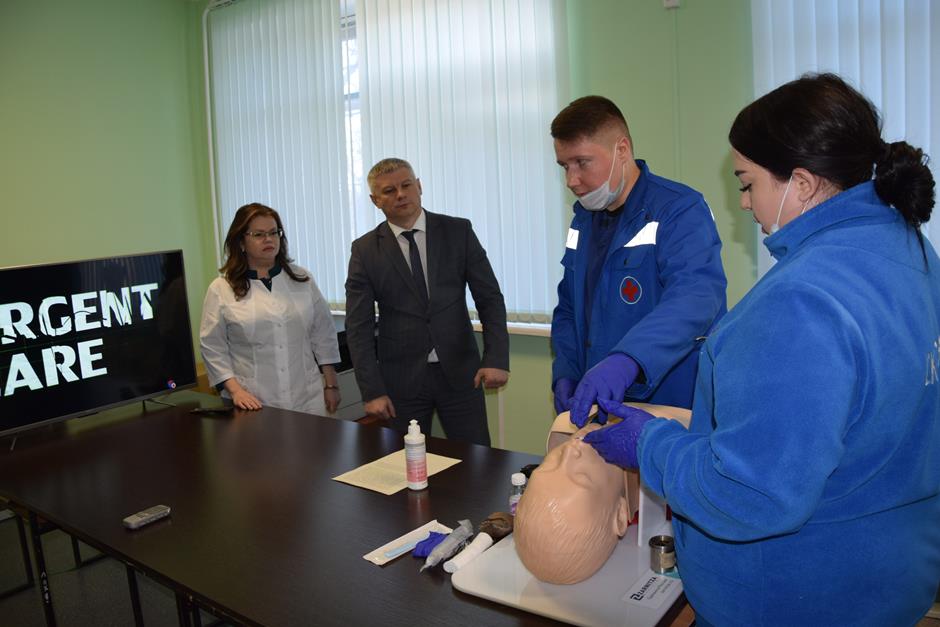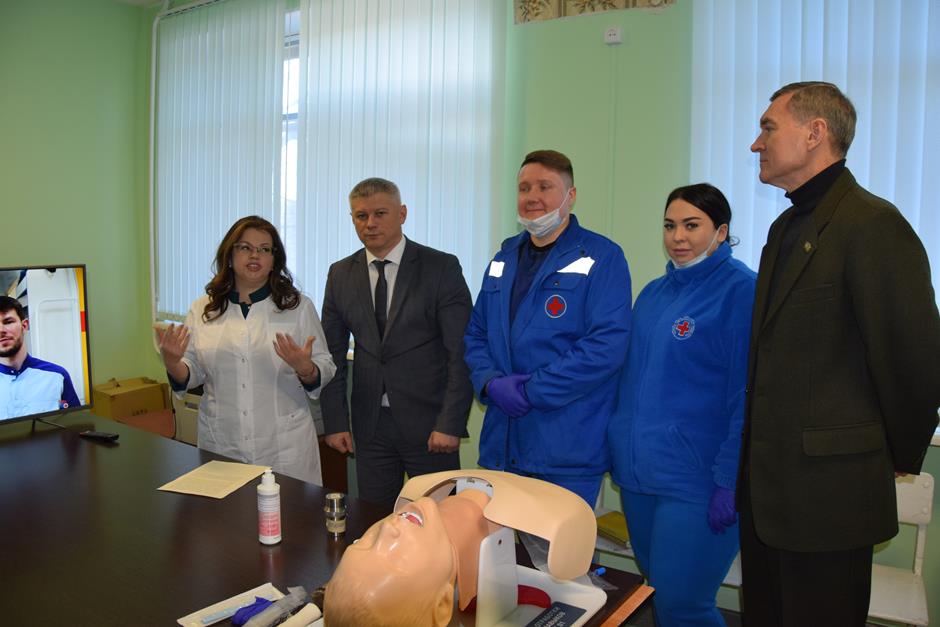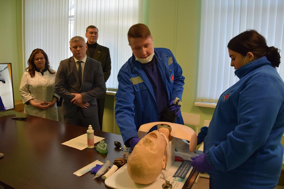 Юрий Николаевич сразу оснастил учебный класс жидкокристаллическим телевизором для трансляции профессиональных видеоматериалов. А за счет средств, зарезервированных в городском бюджете по депутатским округам, решил вопрос с поставкой двух тренажеров стоимостью порядка 200 тысяч рублей: для сердечно-легочной реанимации и для интубации трахеи. Оборудование в действии продемонстрировали фельдшеры Евгений Белоусов и Анна Антонова, отметив ценность полученной возможности для всех горожан – и медиков, и пациентов. Это очень важно и позволит улучшить качество неотложной медицинской помощи, — подчеркнул Юрий Севостьянов. Виталий Фомин поблагодарил коллегу за содействие, отметив, что ОСМП готово к сотрудничеству с МЧС, пожарной службой, полицией, а также образовательными учреждениями, заинтересованными в проведении тренировочного процесса на базе учреждения.