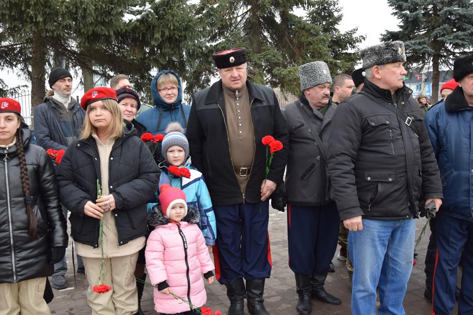 События 80-летней давности шахтинцы ежегодно вспоминают также у монумента Солдату-освободителю. Мероприятия 12 февраля продолжились у Вечного огня в Александровском парке. Перед собравшимися выступили председатель городской Думы — глава города Шахты Андрей Горцевской, председатель комитета Законодательного Собрания Ростовской области по взаимодействию с общественными объединениями молодежной политике, физической культуре, спорту и туризму Ирина Жукова, и. о. главы Администрации города Алексей Тушминцев, военный комиссар по городу Шахты и Октябрьскому району Иван Вансович, председатель шахтинского Совета ветеранов Александр Пятаков. В митинге приняли участие прокурор города Владимир Болдырев, председатель Контрольно-счетной палаты города Галина Аверкина, председатель Общественной палаты города Александр Скориков, депутаты городской Думы, представители Администрации, федеральных структур, патриотических объединений, воспитанники «Поста №1», юнармейцы, общественность, молодежь и жители города.