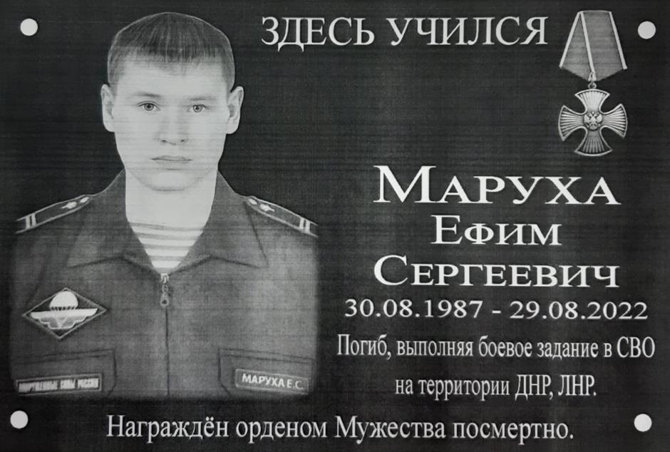 Маруха Ефим Сергеевич родился 30 августа 1987 года. Учился в школе №14. После срочной службы в армии остался в рядах Вооруженных Сил Российской Федерации. Участвовал в боевых действиях в Сирии. Погиб 29 августа 2022 года , выполняя боевое задание в СВО. Награждён медалями и посмертно орденом Мужества. Захоронен с воинскими почестями 2 сентября 2022 года в городе Шахты.