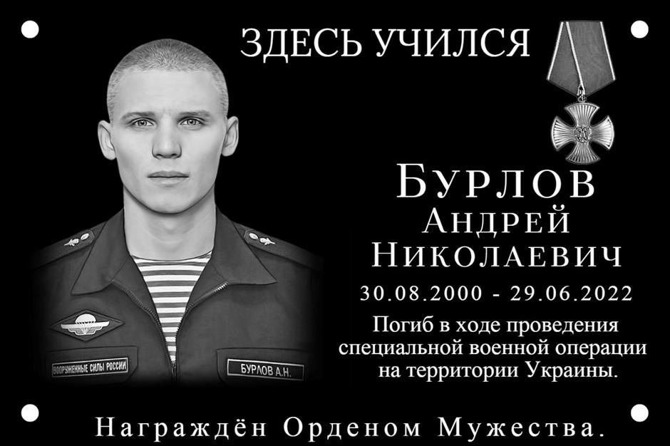 Памятную доску Андрею Николаевичу Бурлову откроют на фасаде здания МБОУ г.Шахты Ростовской области «Средняя общеобразовательная школа №25 имени А. Коренева», расположенного по адресу: г.Шахты, ул.Сапрыкина, 5.