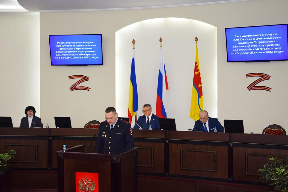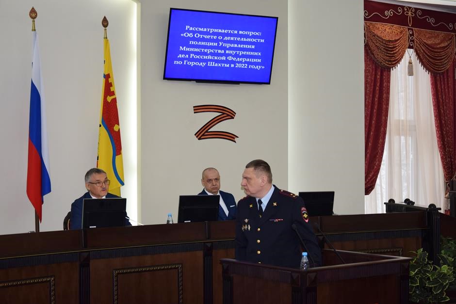 Вопрос №2 — «Об Отчете о деятельности полиции Управления Министерства внутренних дел Российской Федерации по Городу Шахты в 2022 году». В своем выступлении начальник Управления МВД России по г. Шахты Игорь Литвиченко отметил: оперативная обстановка на территории города характеризуется ростом зарегистрированных преступлений, произошедшем из-за увеличения краж в сетевых магазинах. Он также подчеркнул 100% раскрываемость убийств, причинений тяжкого вреда здоровью, изнасилований, хищения оружия, взяточничества, улучшение результатов по раскрытию краж мобильных телефонов, но, как и прежде, значительным остается число мошенничеств с использованием средств мобильной связи и сети Интернет.