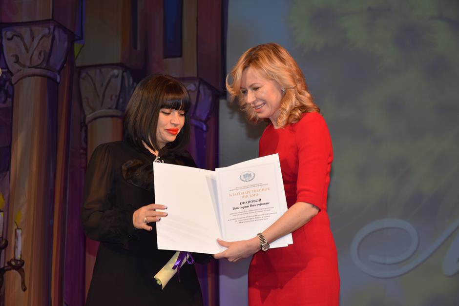— социальному работнику отделения социального обслуживания № 11 муниципального бюджетного учреждения города Шахты «Центр социального обслуживания граждан пожилого возраста и инвалидов № 1» Наталье Ефремовой — за многолетний, добросовестный труд и высокий профессионализм, компетентность, знание законодательных нормативных документов по вопросам социального обслуживания, психологии пожилых людей, умение организовывать, планировать и в полном объеме выполнять свою работу, добиваться хороших результатов.