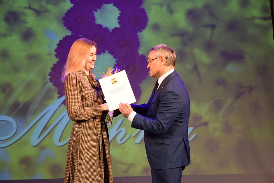 В центре внимания — те, кто способны воодушевлять, дарить крылья, наполнять жизнь мужчины уверенностью в себя, вдохновлять его на триумфальные подвиги, героические поступки и делать это легко и бескорыстно. Дню весны и красоты посвятили в городском драмтеатре программу «Благословенной женщине – салют!» Букет из праздничных поздравлений составили выступления шахтинских талантов, официальных лиц и почетных гостей. С теплыми словами и пожеланиями к собравшимся обратился председатель Городской Думы – глава города Шахты Андрей Горцевской. Он вручил Благодарственные письма городской Думы. Ими в связи с празднованием Международного женского дня поощрены: