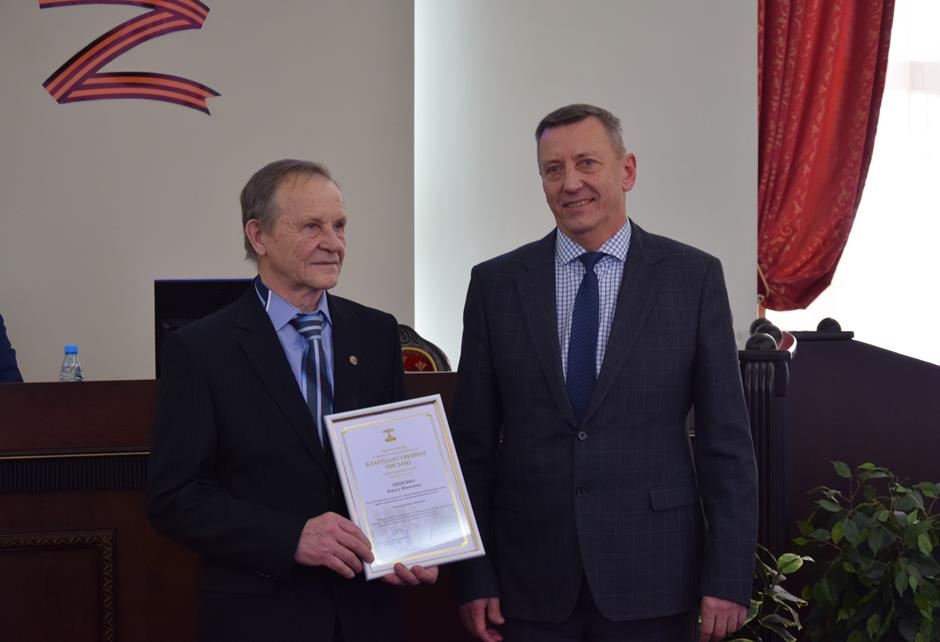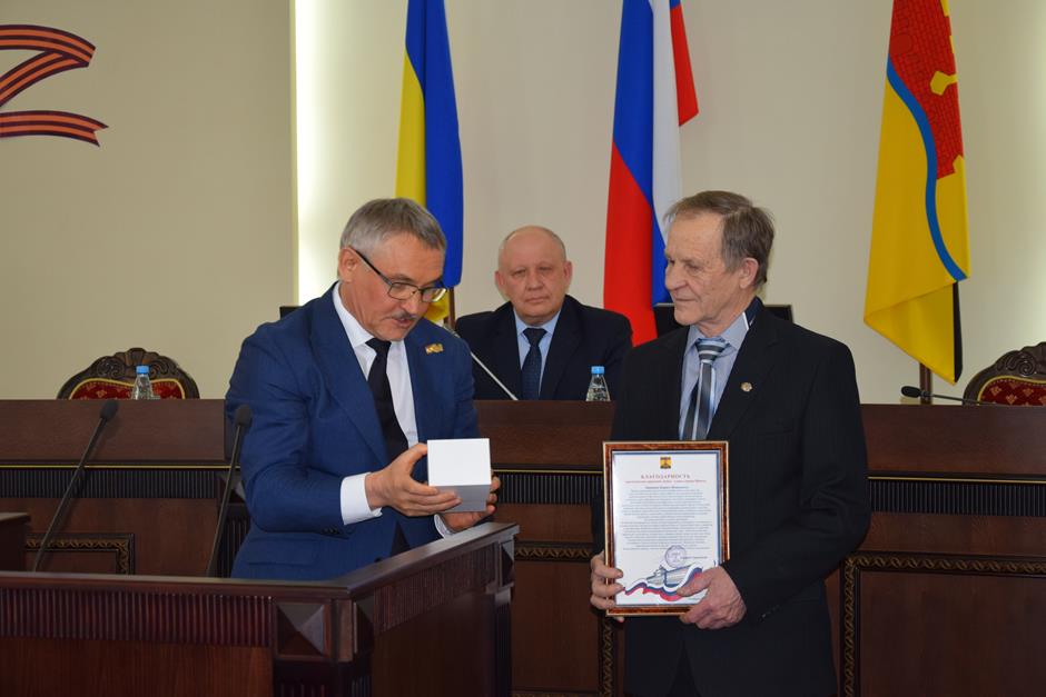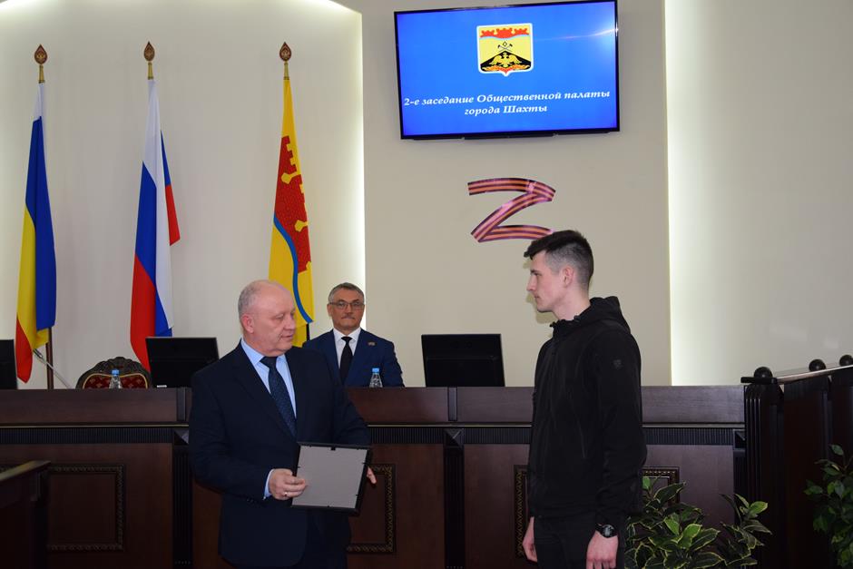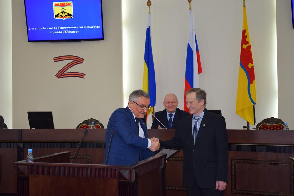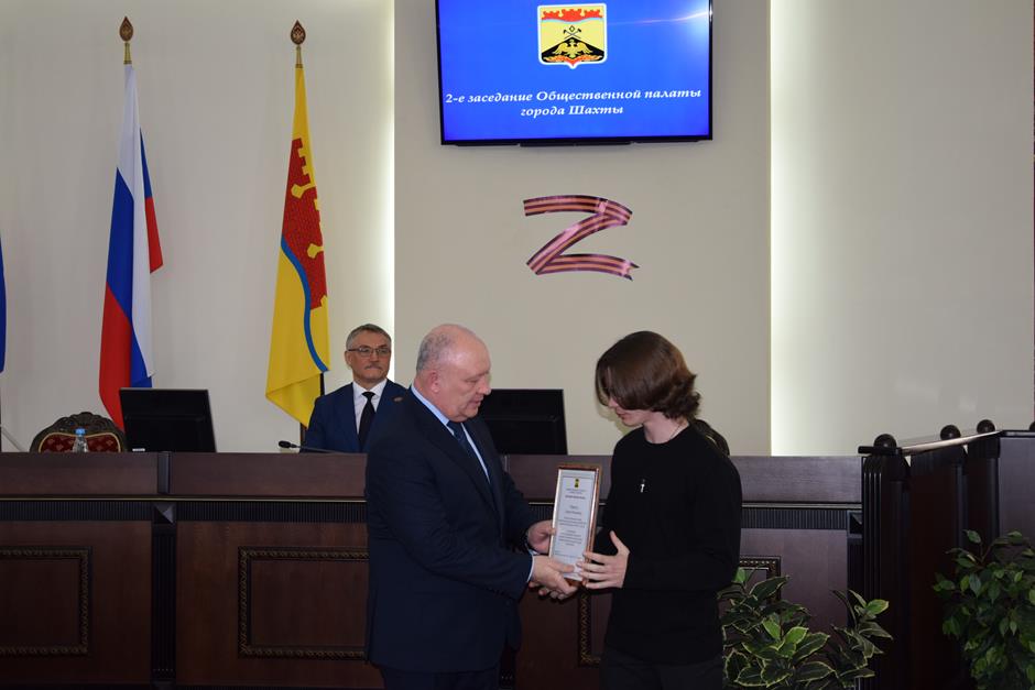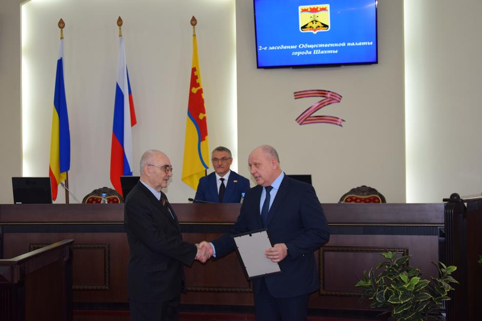 Заседание открыла процедура вручения наград. Благодарности председателя городской Думы — главы города Шахты Андрея Горцевского и ценного подарка удостоен Борис Ляшенко — член Шахтинского городского совета ветеранов (пенсионеров) войны, труда, вооруженных сил и правоохранительных органов, член Общественной палаты города Шахты 2 и 3 созывов. Он также отмечен Благодарственным письмом Администрации города и Почетной грамотой Общественной палаты — за эффективную, многолетнюю работу по воспитанию подрастающего поколения города Шахты, высокий профессионализм в деле совершенствования местного самоуправления и значительный вклад в развитие институтов гражданского общества