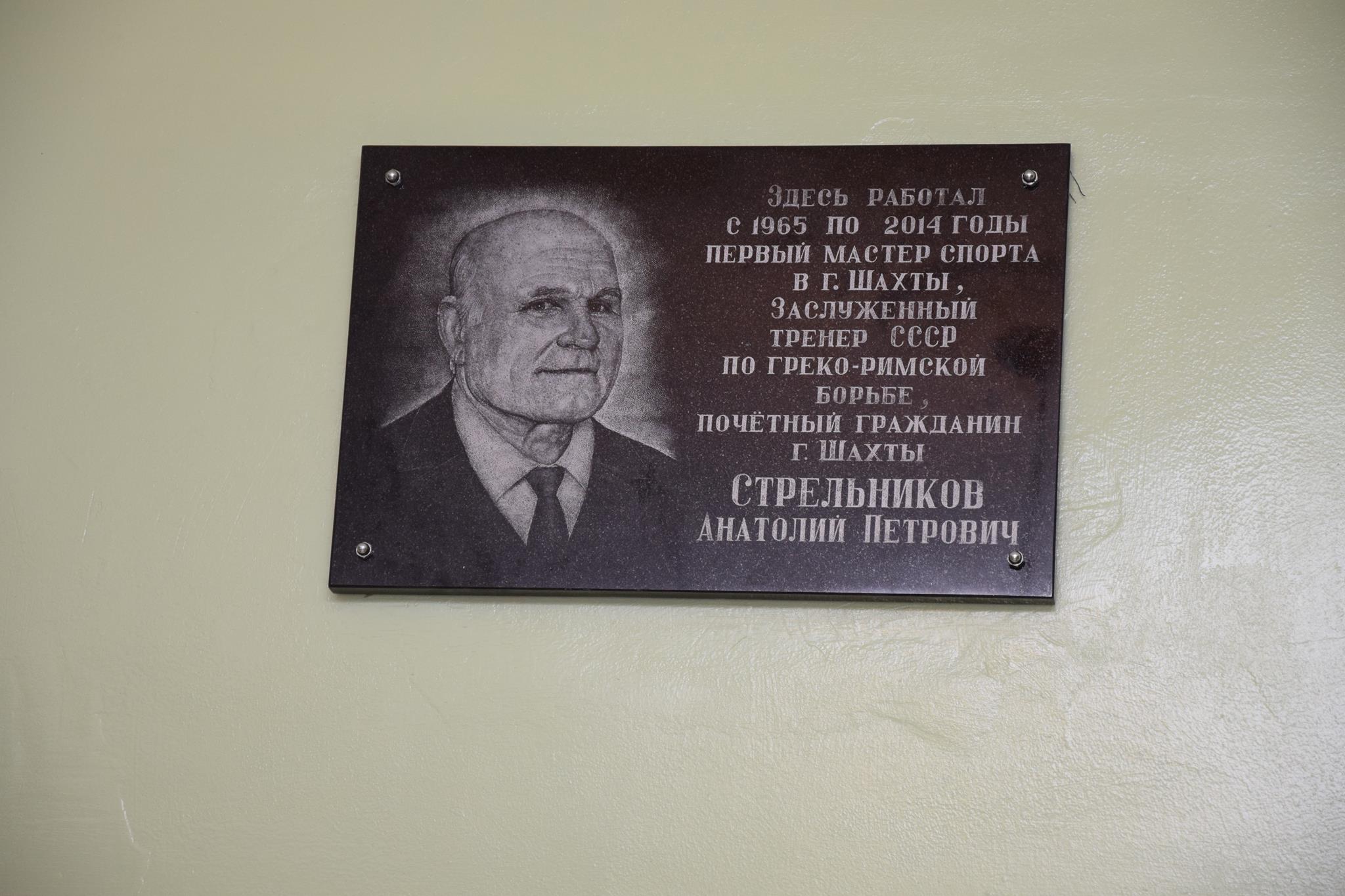 — Сегодня заслуженному тренеру СССР и России, Почётному гражданину города Шахты Анатолию Петровичу Стрельникову исполнилось бы 87 лет. И в день рождения этого удивительного человека, которого по праву можно считать одним из основателей школы греко-римской борьбы Ростовской области, мы открываем мемориальную доску в стенах, которые были дня него родными на протяжении десятков лет! За годы своей тренерской работы с 1961 года Анатолий Петрович воспитал плеяду спортивных звёзд страны, при этом всегда и всё — выверял личным опытом, шёл к мастерству собственным, неповторимым, уникальным путём. Имея более десяти лет подземного шахтёрского стажа, он параллельно двигался вперёд и вверх по ничуть не менее сложной и важной тренерской стезе.