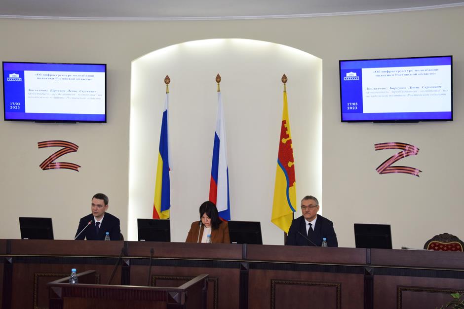 «Инфраструктура – основной ресурс реализации молодежной политики». Эту тему обсудили 17 марта в Шахтах. Мероприятие Законодательного Собрания Ростовской области состоялось на площадке городской Думы. В нем приняли участие председатель комитета ЗСРО по взаимодействию с общественными объединениями молодежной политике, физической культуре, спорту и туризму Ирина Жукова, председатель городской Думы — глава города Шахты Андрей Горцевской, заместитель председателя Комитета по молодежной политике Ростовской области Денис Барсуков, представители 4-х муниципальных образований региона, областных и городских СМИ.