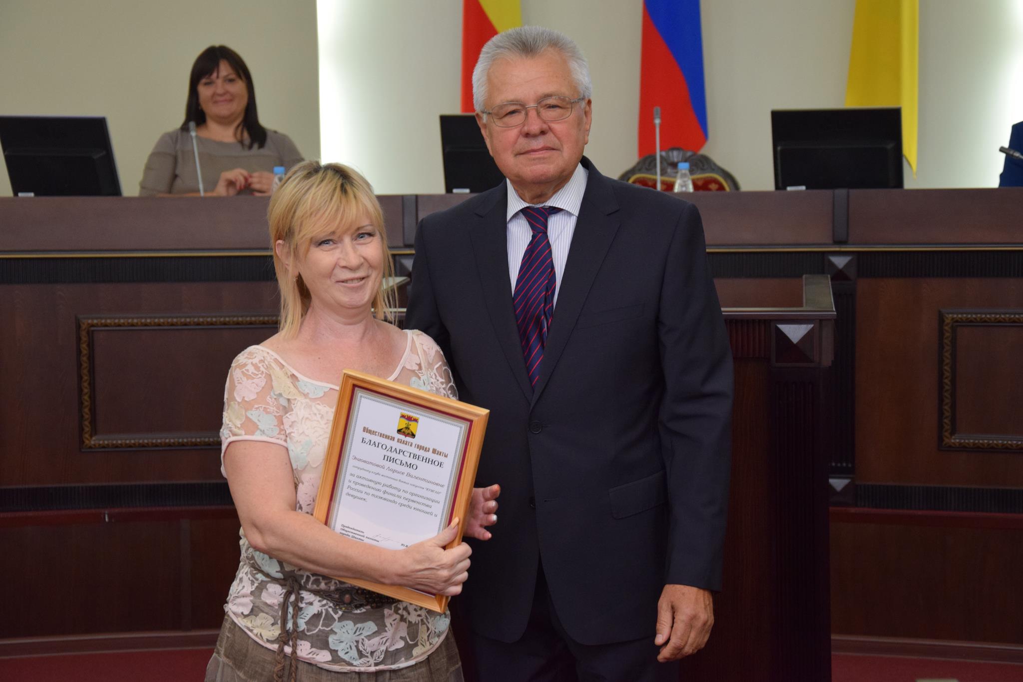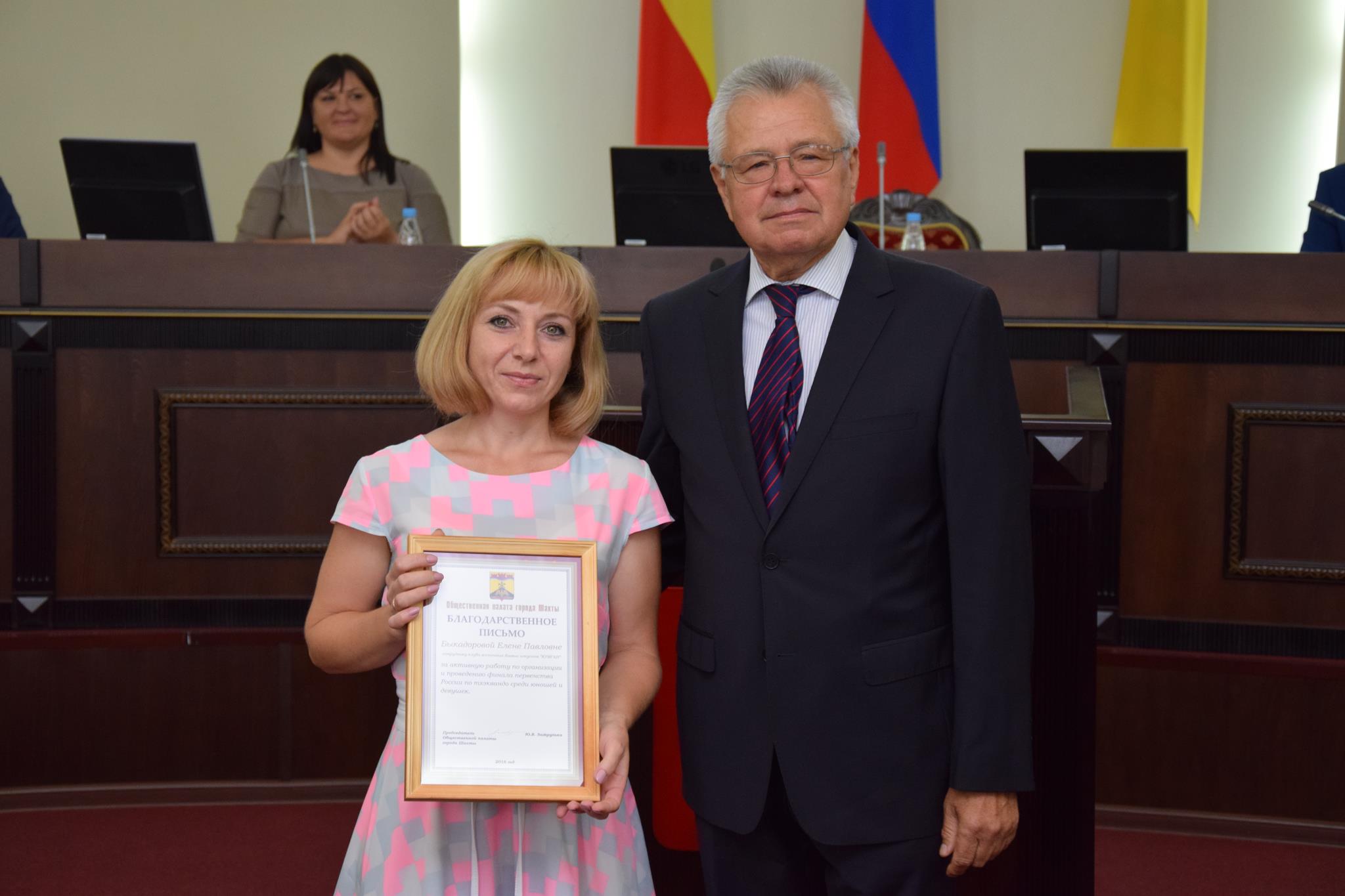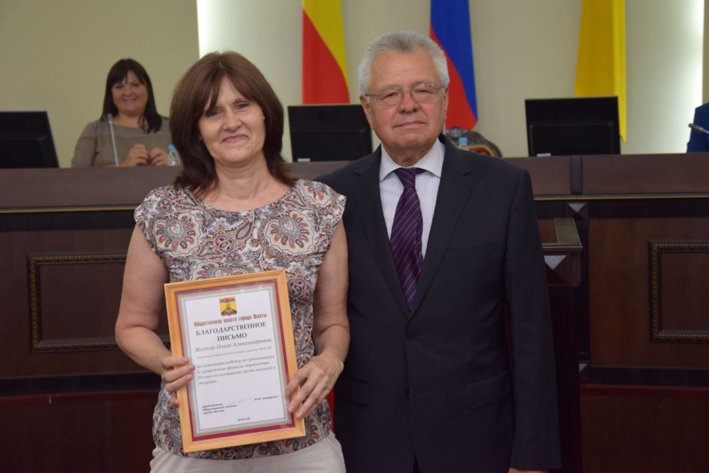 Далее состоялась церемония награждения Почетными грамотами Общественной палаты города Шахты работников ГКУ РО «Центр занятости населения г. Шахты». За большой вклад в развитие, становление и в связи с 25-летием службы занятости города Шахты были награждены работники государственного казенного учреждения Ростовской области «Центр занятости населения города Шахты»: ведущий инспектор отдела по работе с работодателями Виктория Николаевна Бондаренко, ведущий инспектор отдела трудоустройства и специальных программ занятости Александра Алексеевна Михайлова, ведущий инспектор отдела трудоустройства и специальных программ занятости Татьяна Николаевна Новикова, ведущий инспектор отдела автоматической системы управления и статистики Елена Александровна Пивкина, старший инспектор финансово-бухгалтерского отдела Алла Валентиновна Тимофеева, инспектор отдела автоматической системы управления и статистики Нина Самсоновна Кахиашвили.