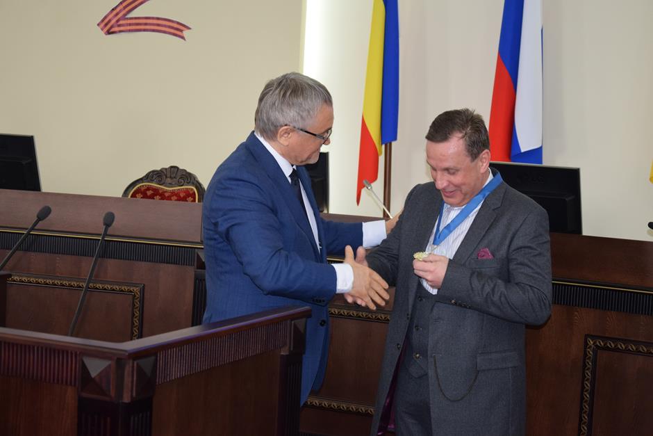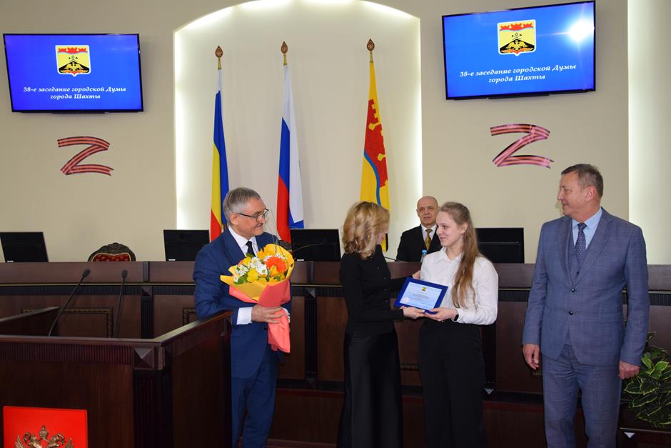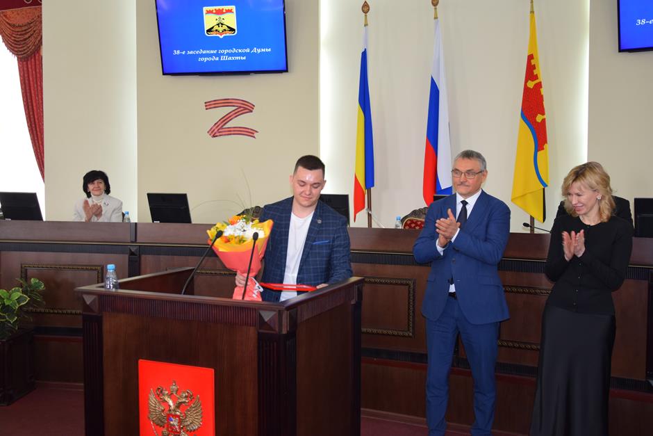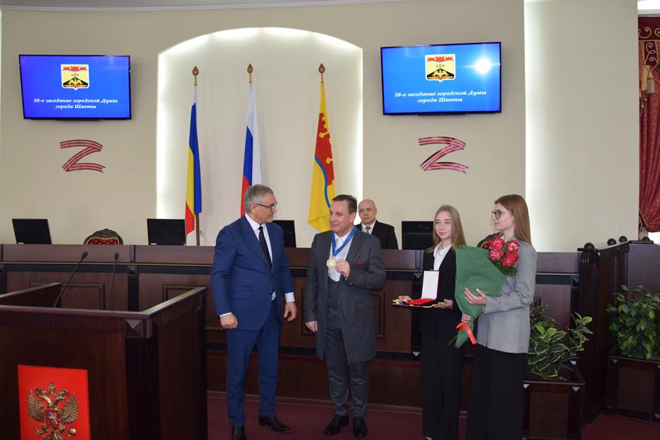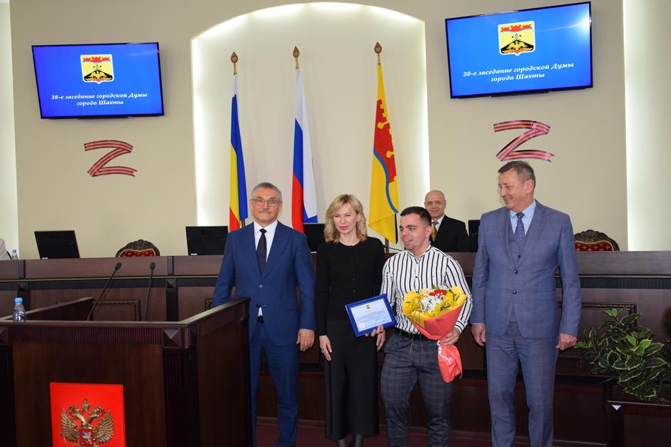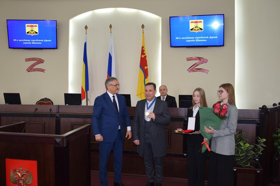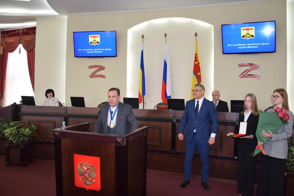 На 38-ом заседании Думы Почетным знаком главы города Шахты наградили президента областной федерации тхэквондо Александра Смирнова и вручили сертификаты о назначении именных стипендий студентам города Шахты