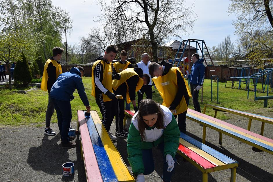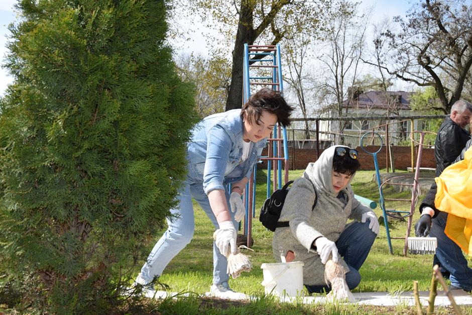 Все вместе приводили в порядок площадку шахтинского центра помощи детям №1, где в настоящее время проживают 14 воспитанников. Территорию озеленили молодыми деревцами, а также обновили бордюры и лавочки. Рабочих рук было много, трудились дружно и с большим желанием.