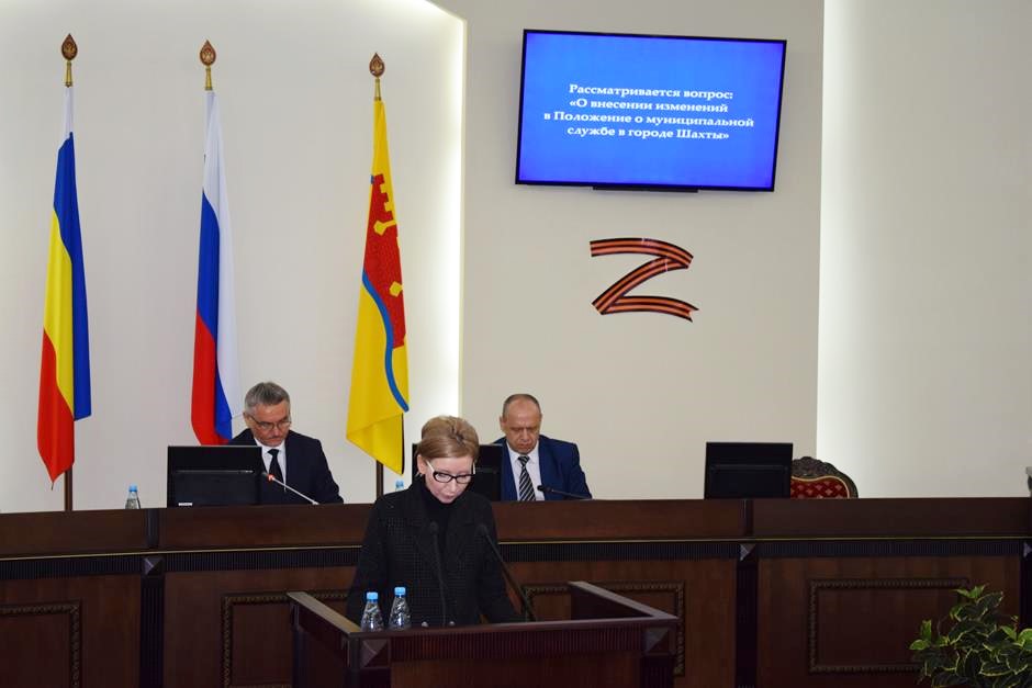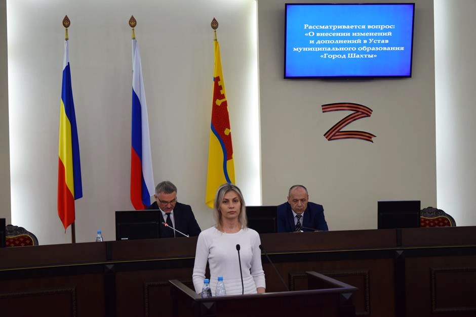Вопрос №3 –«О внесении изменений и дополнений в Устав муниципального образования «Город Шахты». Их пояснила начальник организационно-правового отдела городской Думы Ольга Стрюкова: документ приводится в соответствие с федеральным и областным законодательством. Редактируется статья, определяющая статус депутата городской Думы, председателя городской Думы — главы города Шахты. Она дополняется пунктом, который устанавливает: отсутствие депутата без уважительных причин на всех заседаниях городской Думы в течение шести месяцев подряд является основанием для досрочного прекращения его полномочий. Ряд вносимых правок обусловлен корректировками Бюджетного кодекса РФ. Изменения в Устав приняты без обсуждения.