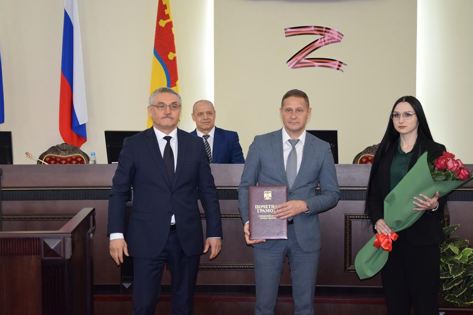 Открыла заседание торжественная процедура вручения Почетной грамоты городской Думы. Награды удостоен директор Департамента по физическому развитию и спорту Валентина Стрелкова — за эффективную и добросовестную муниципальную службу в области обеспечения условий для развития на территории города Шахты физической культуры и за организацию работы по проведению в городе Шахты в 2022 году года имени В.И. Алексеева.
