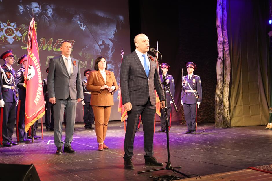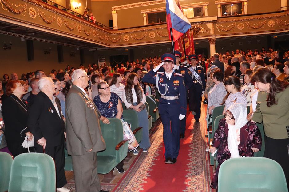 «Пусть огонь Победы в каждом сердце светит и живет». Собрание в городском драматическом театре 6 мая открыло череду официальных праздничных торжеств, посвященных 78-ой годовщине окончания Великой Отечественной войны. В них приняли участие наши уважаемые ветераны, председатель комитета Законодательного Собрания Ростовской области по взаимодействию с общественными объединениями, молодежной политике, физической культуре, спорту и туризму Ирина Жукова, депутат ЗСРО Евгений Понамаренко, и.о. председателя городской Думы – главы города Шахты Константин Корнеев, и.о. главы Администрации города Алексей Тушминцев, председатель Контрольно-счетной палаты города Галина Аверкина, прокурор города Владимир Болдырев, председатель городского Совета ветеранов Александр Пятаков, председатель Общественной палаты Александр Скориков, депутаты городской Думы, представители общественности, молодежи — воспитанники казачьего Я.П. Бакланова кадетского корпуса, «Поста № 1», «юнармейцы» — и жители города.