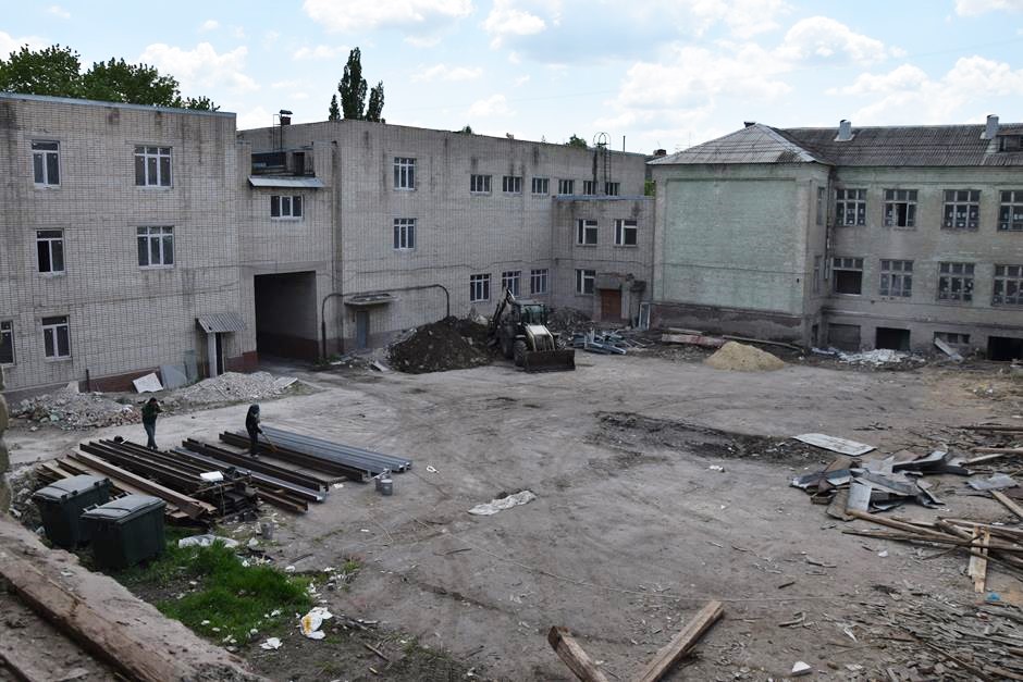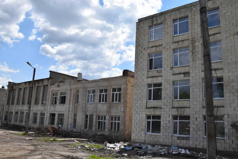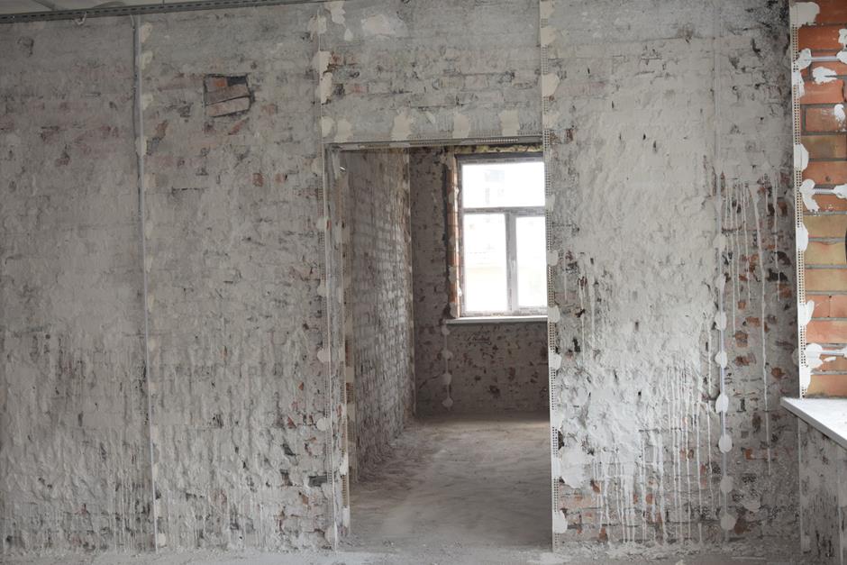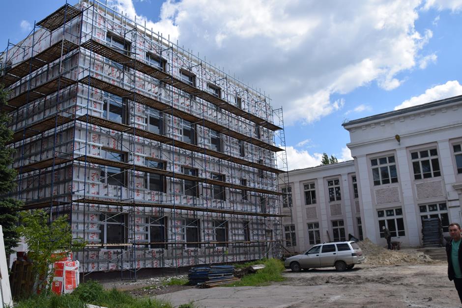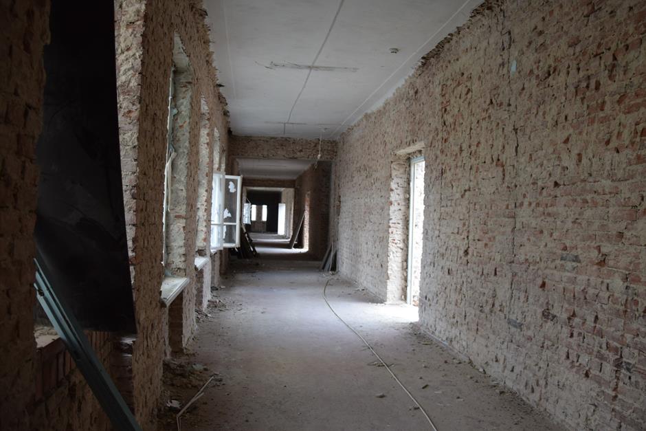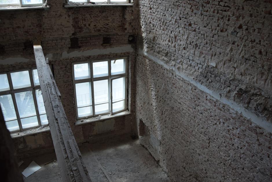 На текущую дату подрядной организацией демонтированы внутренние инженерные коммуникации, оконные и дверные блоки. Установлены металлопластиковые окна. В настоящее время выполняется устройство фасадов, кирпичная кладка перегородок, усиление проемов.
