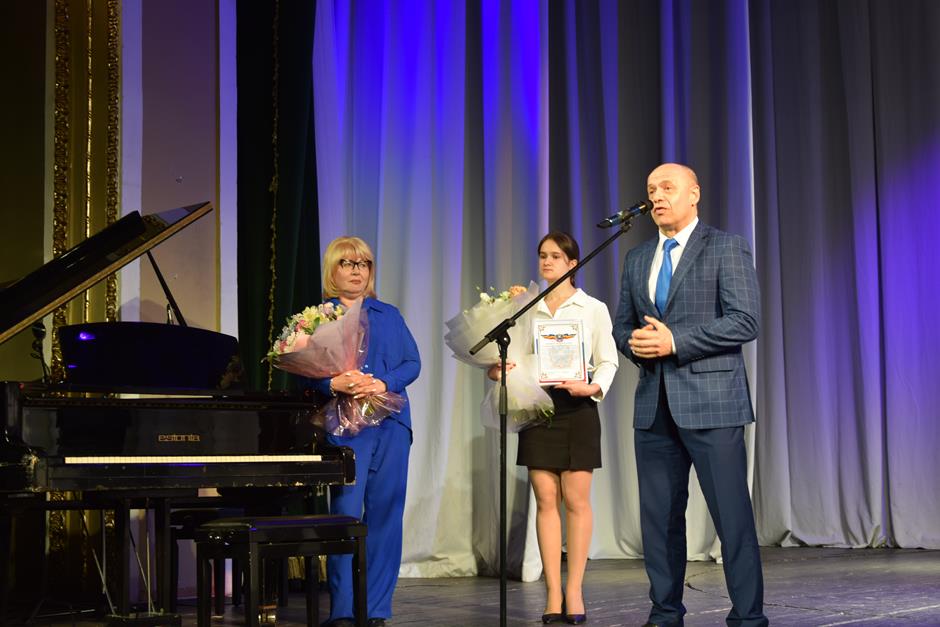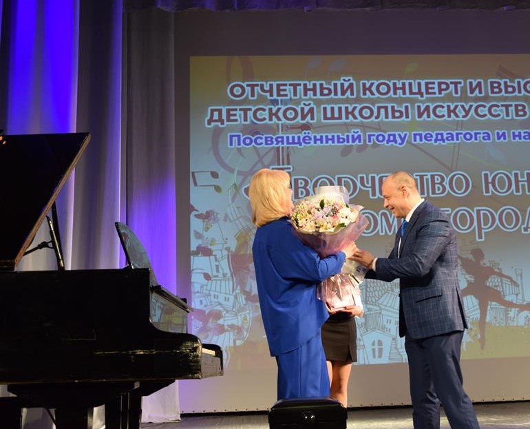 Константин Кузьмич подчеркнул важность укрепления материально-технической базы учреждения, которая в этом учебном году (в рамках национального проекта «Культура») была пополнена новыми музыкальными инструментами. Продолжается реализация проекта по созданию виртуального концертного зала на базе Центра искусств им. С.В. Рахманинова на 145 мест. Из городского бюджета уже в течение многих лет осуществляется стипендиальная поддержка одаренных юных шахтинцев. Всем этим вопросам на государственном уровне уделяется первоочередное внимание, и депутатский корпус всегда будет оказывать всестороннюю поддержку, – отметил Константин Корнеев, вручив директору учреждения Елене Макаровой цветы.