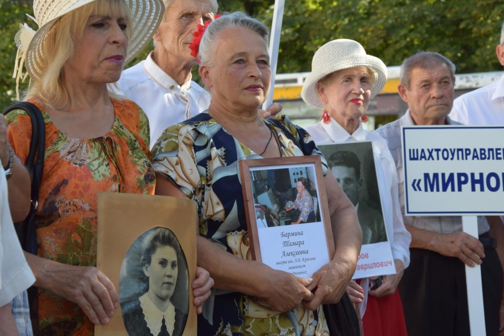 Выступили на митинге заслуженные шахтёры города и их дети, читали стихи в память о своих товарищах. Многие принесли портреты своих близких, которые уже покинули белый свет. А потом состоялось возложение цветов к Мемориалу шахтёрской славы и колонна с табличками, указывающими на принадлежность к той или иной шахте, с фотографиями шахтёров отправилась к памятнику Михаила Чиха — дважды Герою Социалистического Труда. После возложения цветов к постаменту, колонна участников «Бригады шахтерского труда» влилась и возглавила праздничное шествие городских коллективов. Когда они проходили мимо трибун, им аплодировали стоя!