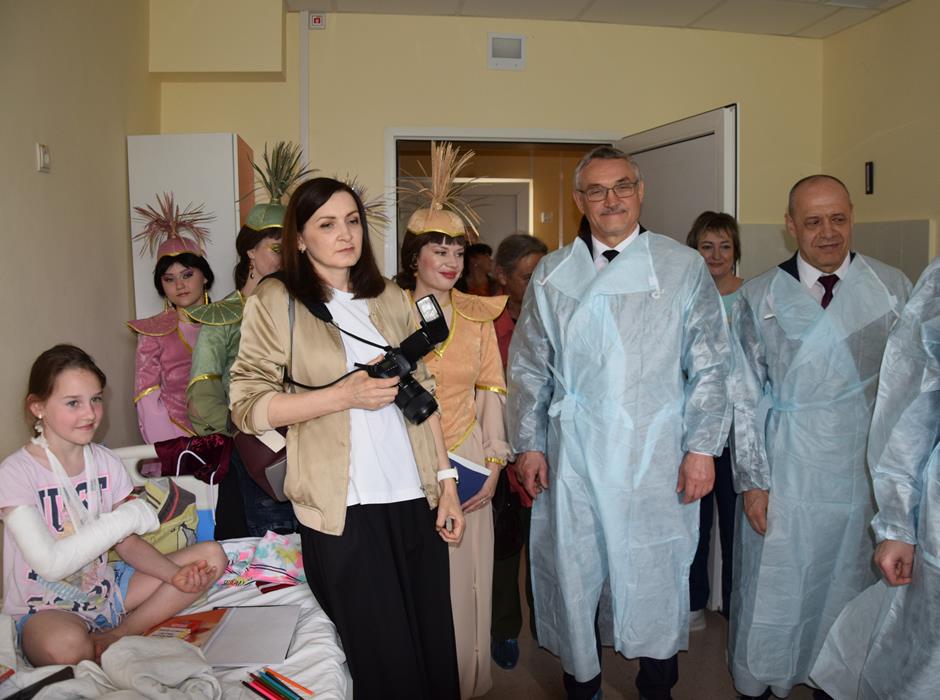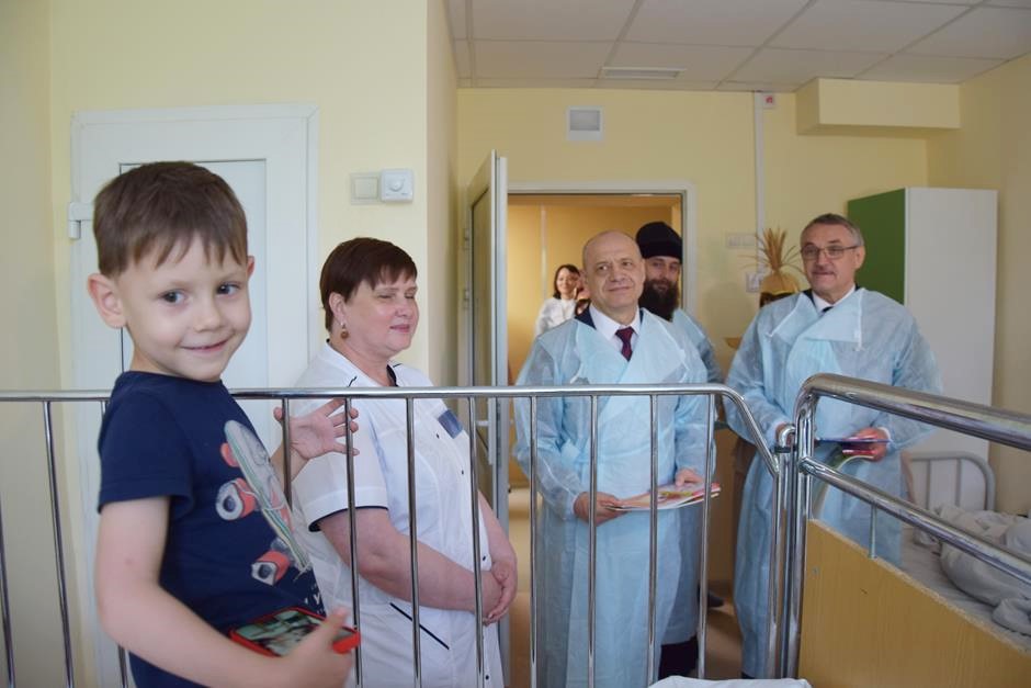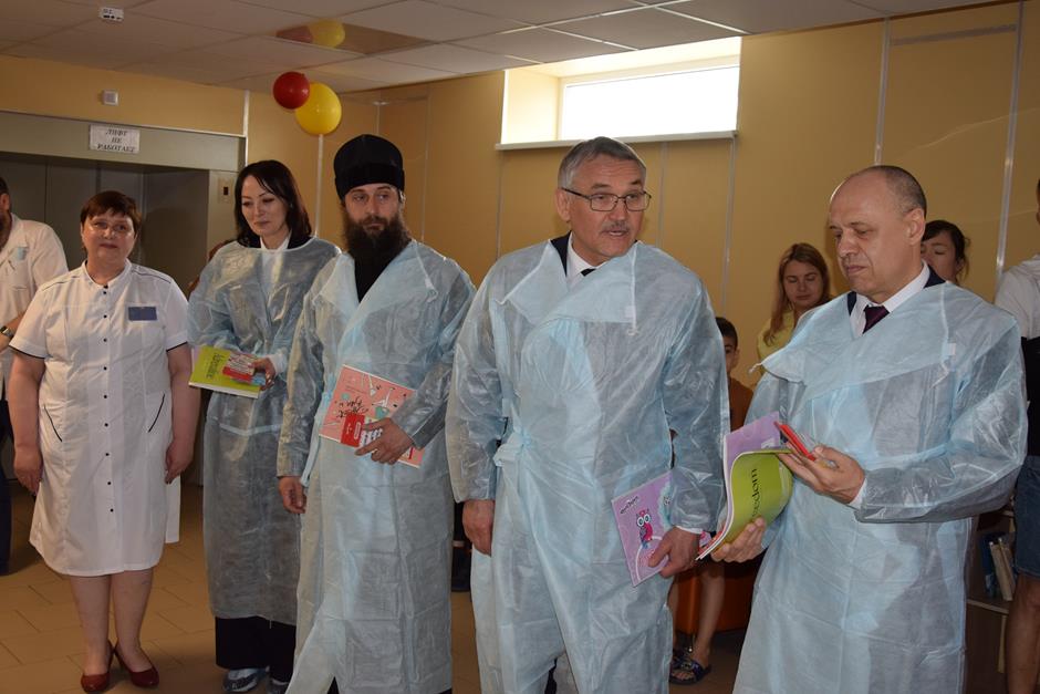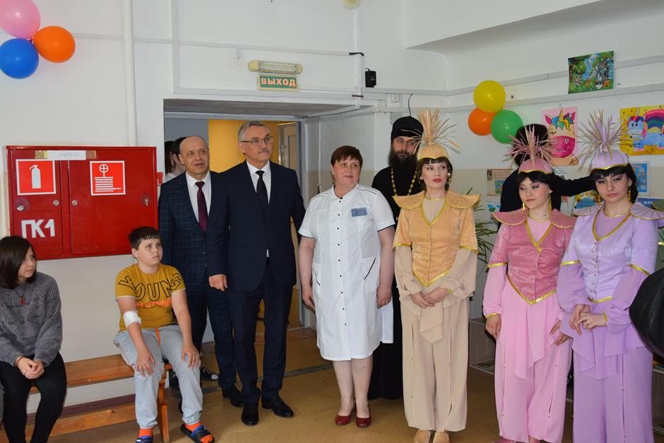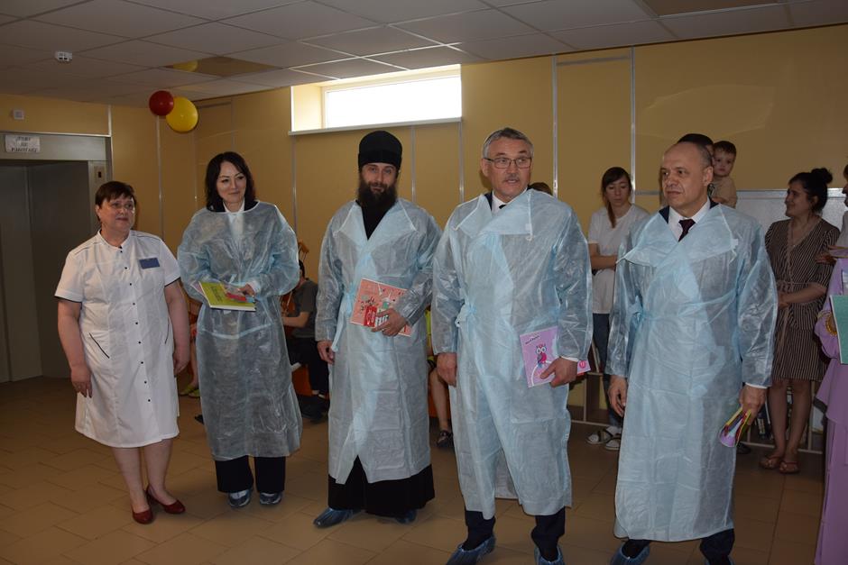 Ребят, получающих медицинскую помощь в стенах ДГБ, навестили исполняющий обязанности председателя городской Думы – главы города Шахты Константин Корнеев, глава Администрации Андрей Горцевской, заместитель главы Администрации Ольга Тхак, благочинный приходов Александровск-Грушевского округа, член Общественной палаты города, протоиерей Сергий Яценко, главный врач ГБУ РО «ДГБ» Светлана Казакова. Вместе с представительницами студии «Ковчег» гости вручили маленьким пациентам подарки и пожелали им скорейшего выздоровления и активного, летнего отдыха.