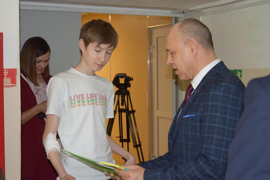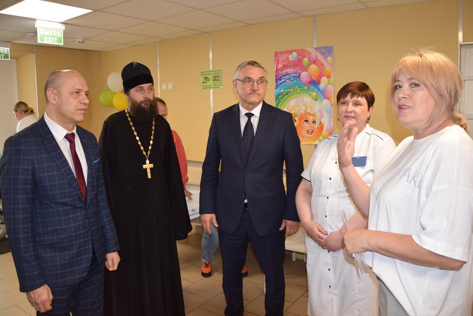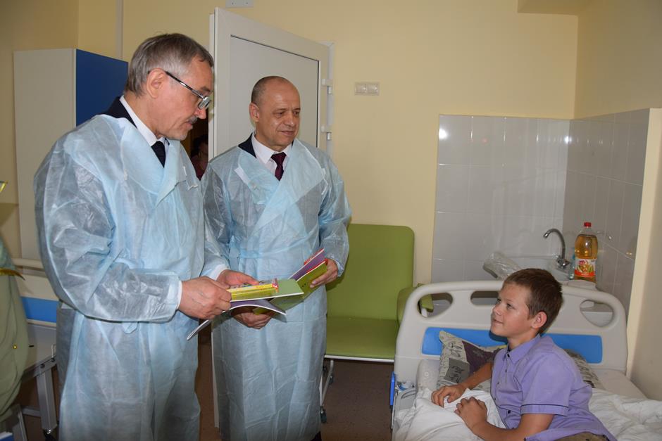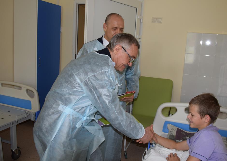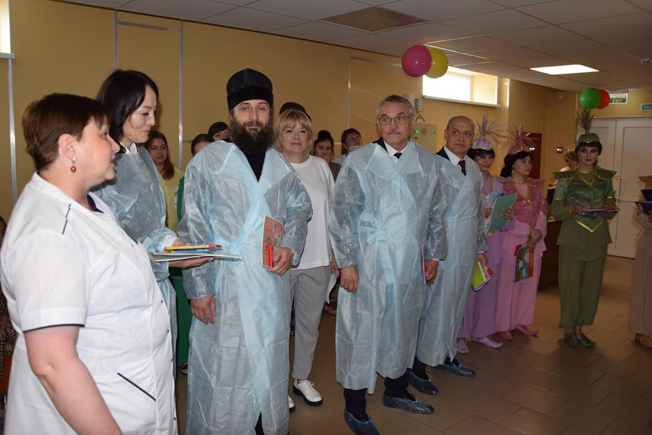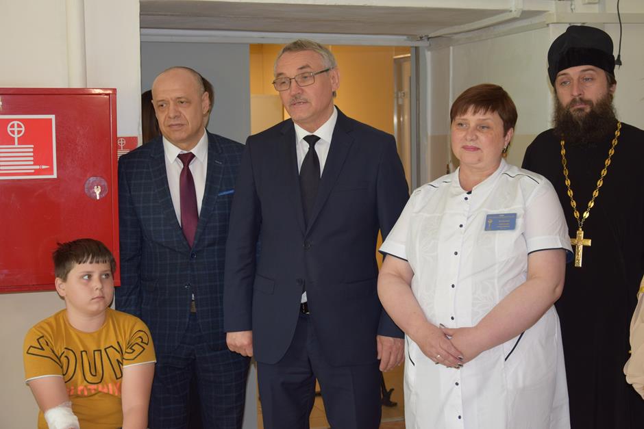 Ребят, получающих медицинскую помощь в стенах ДГБ, навестили исполняющий обязанности председателя городской Думы – главы города Шахты Константин Корнеев, глава Администрации Андрей Горцевской, заместитель главы Администрации Ольга Тхак, благочинный приходов Александровск-Грушевского округа, член Общественной палаты города, протоиерей Сергий Яценко, главный врач ГБУ РО «ДГБ» Светлана Казакова. Вместе с представительницами студии «Ковчег» гости вручили маленьким пациентам подарки и пожелали им скорейшего выздоровления и активного, летнего отдыха.
