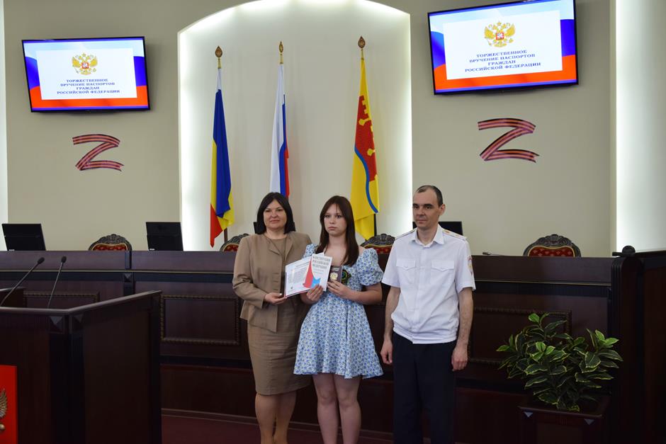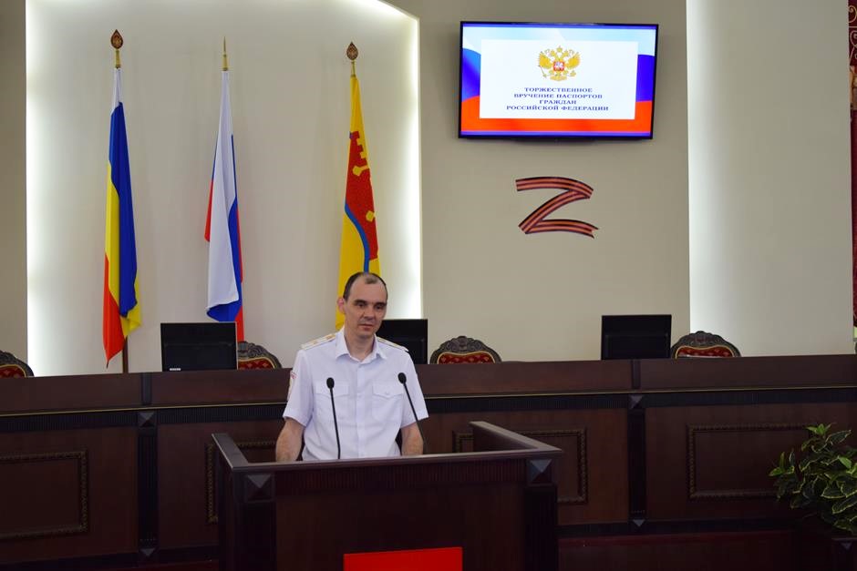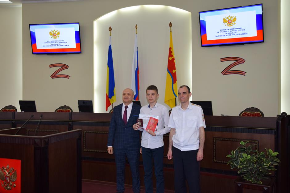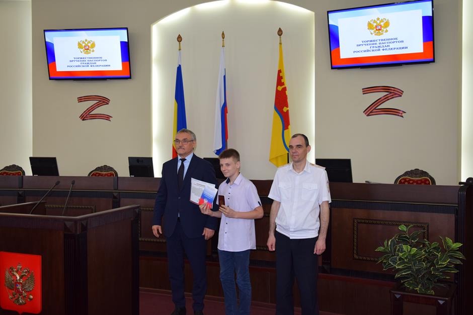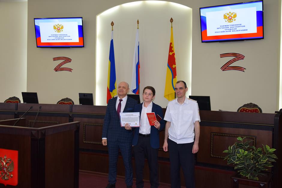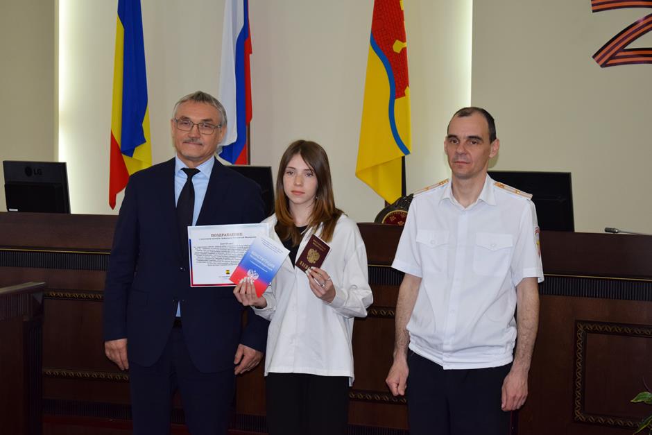 В Шахтах состоялась торжественное вручение паспортов Российской Федерации 14-летним горожанам. С поздравлением к ним обратился исполняющий обязанности начальника отдела по вопросам миграции Управления МВД России по городу Шахты Сергей Бахарев. 16 юных граждан получили свой главный официальный документ. В церемонии приняли участие депутат Государственной Думы Федерального собрания РФ 8 созыва Екатерина Стенякина, председатель комитета Законодательного Собрания Ростовской области по взаимодействию с общественными объединениями, молодежной политике, физической культуре, спорту и туризму Ирина Жукова, исполняющий обязанности председателя городской Думы – главы города Шахты Константин Корнеев, глава Администрации города Андрей Горцевской.