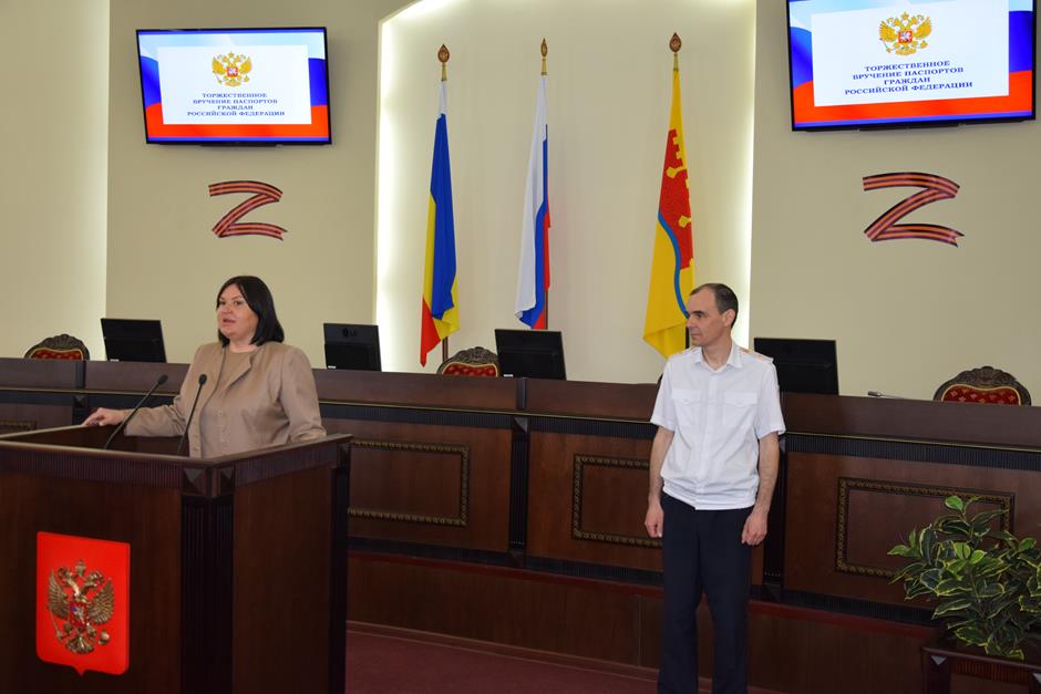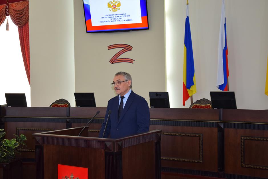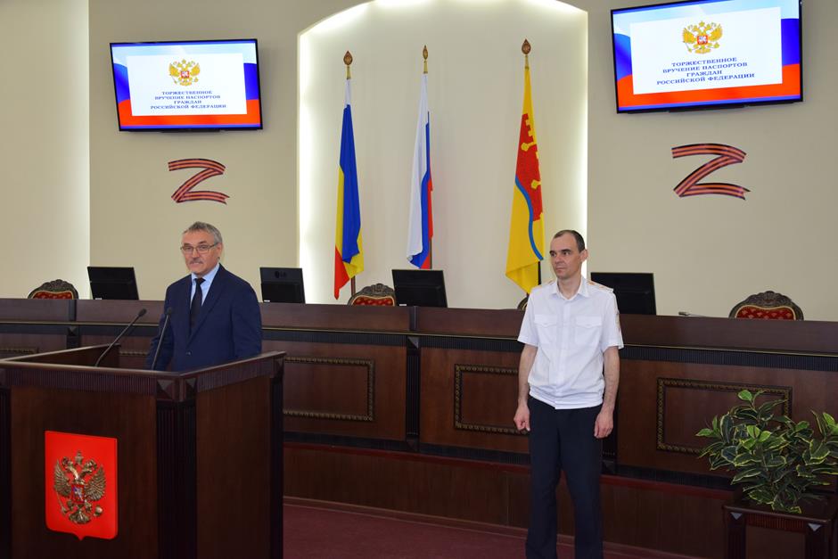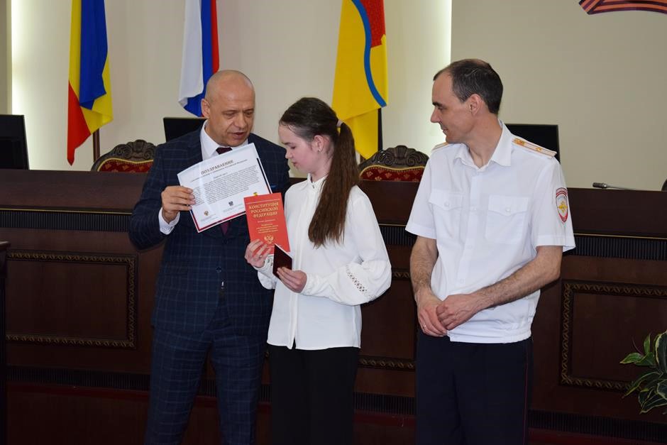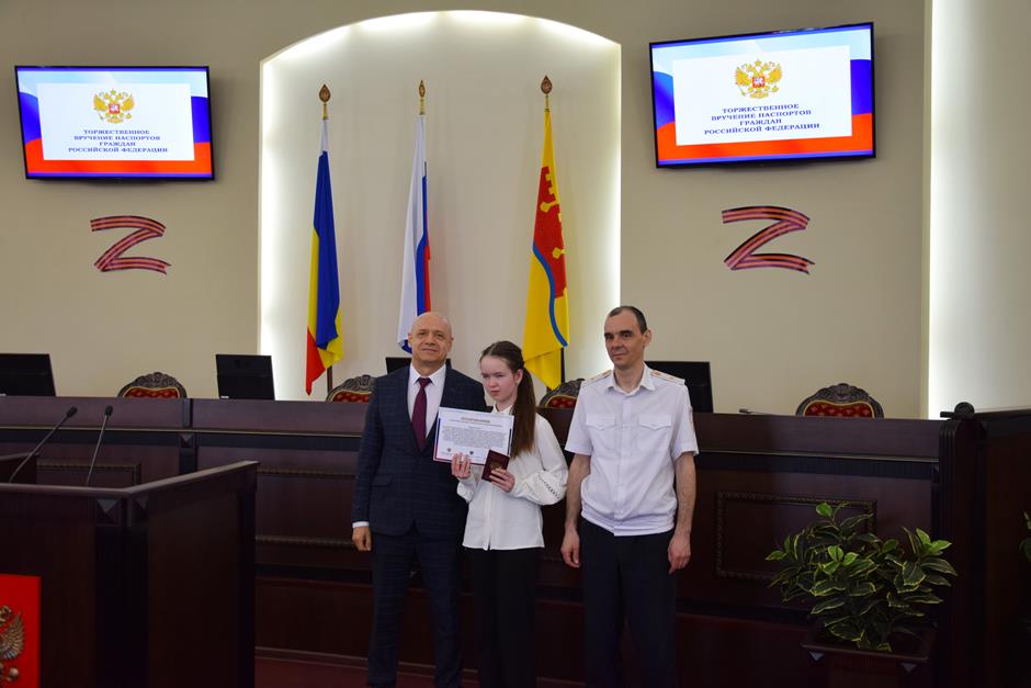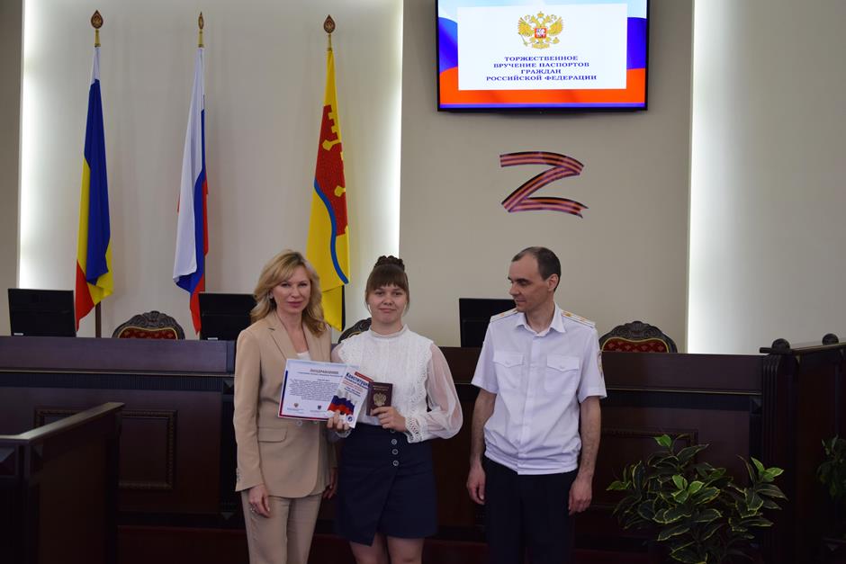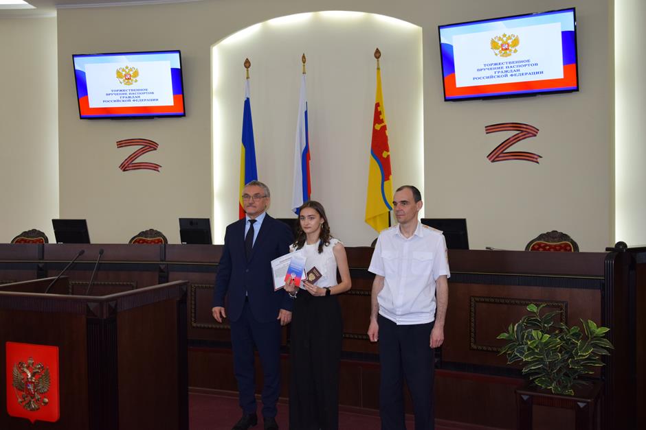 В Шахтах состоялась торжественное вручение паспортов Российской Федерации 14-летним горожанам. С поздравлением к ним обратился исполняющий обязанности начальника отдела по вопросам миграции Управления МВД России по городу Шахты Сергей Бахарев. 16 юных граждан получили свой главный официальный документ. В церемонии приняли участие депутат Государственной Думы Федерального собрания РФ 8 созыва Екатерина Стенякина, председатель комитета Законодательного Собрания Ростовской области по взаимодействию с общественными объединениями, молодежной политике, физической культуре, спорту и туризму Ирина Жукова, исполняющий обязанности председателя городской Думы – главы города Шахты Константин Корнеев, глава Администрации города Андрей Горцевской.
