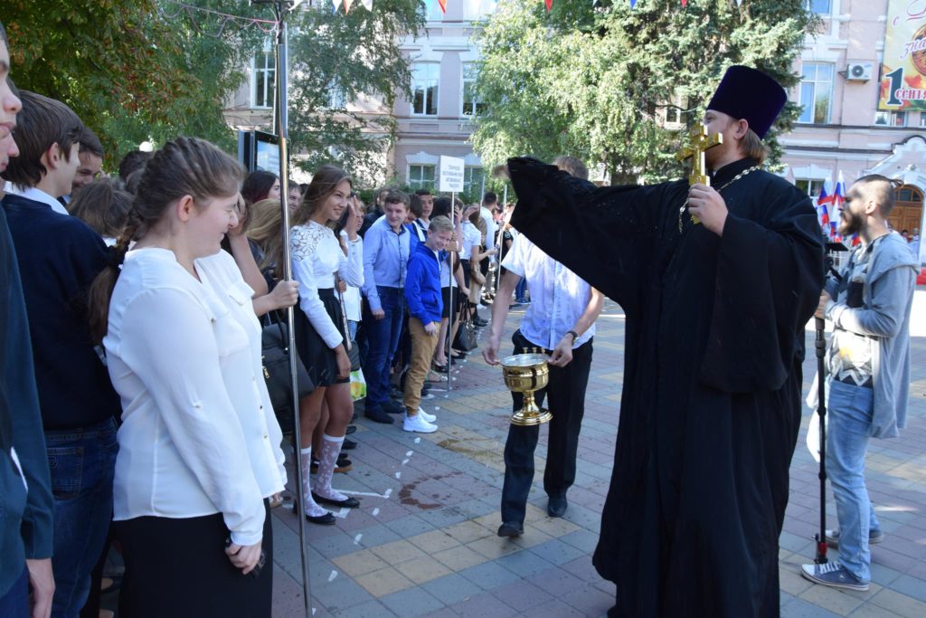 Поприветствовать студентов пришли председатель городской Думы — глава города Ирина Жукова, депутат Законодательного Собрания РО Екатерина Стенякина, депутаты городской Думы Аркадий Гершман и Тенгиз Хиникадзе, заместитель главы Администрации города Шахты Алексей Коренев. Юному поколению высшей школы желали интересных студенческих лет, наполненных трудом, любовью к знаниям и весёлым отдыхом! Первокурсникам вручили студенческие билеты, а протоиерей Роман Амплиев благословил их и окропил святой водой!