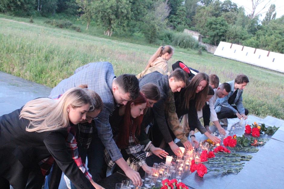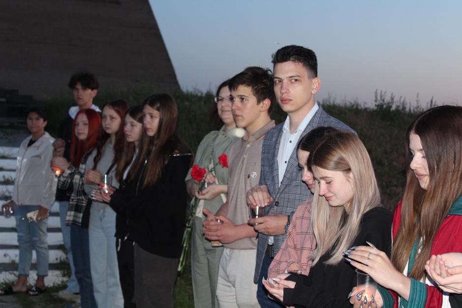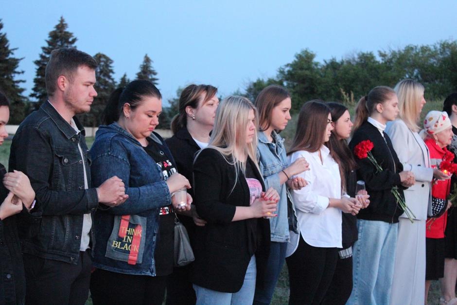 Более 27 миллионов человек погибли в борьбе с фашизмом, пожертвовали собой во имя Великой Победы. Их подвиг потомки чтут и передают из поколения в поколение. Патриотическую акцию провели в 4 утра шахтинцы на мемориальном комплексе «Жертвам фашизма». По инициативе Молодежного парламента при городской Думе города Шахты «Свечи памяти» здесь зажигают уже больше 10-ти лет: в память о погибших за свободу Родины в годы Великой Отечественной войны – бойцах и мирных жителях, расстрелянных, угнанных в плен, замученных в застенках Гестапо и концлагерях. Шурф шахты имени Красина в годы оккупации города нацистскими захватчиками стал братской могилой более чем для 3500 шахтинцев. В знак скорби о них рассвет на знаковом месте вместе с молодежью встретили председатель комитета ЗСРО по взаимодействию с общественными объединениями, молодежной политике, спорту и туризму Ирина Жукова, исполняющий обязанности председателя городской думы – главы города Шахты Константин Корнеев, депутат городской Думы Ирина Левашова, председатель Молодежного парламента при городской Думе Андрей Ткачев и молодые парламентарии, представители общественных объединений и жители поселка Красина. К подножию мемориала возложили цветы. Также акции памяти прошли на мемориалах поселков Фрунзе и Аютинский. Огнем благодарной памяти живет в наших сердцах героическое завоевание советского солдата, отстоявшего в 1945-ом мир на земле, показавшего нерушимость единого народного духа и силу беззаветной любви к Родине.