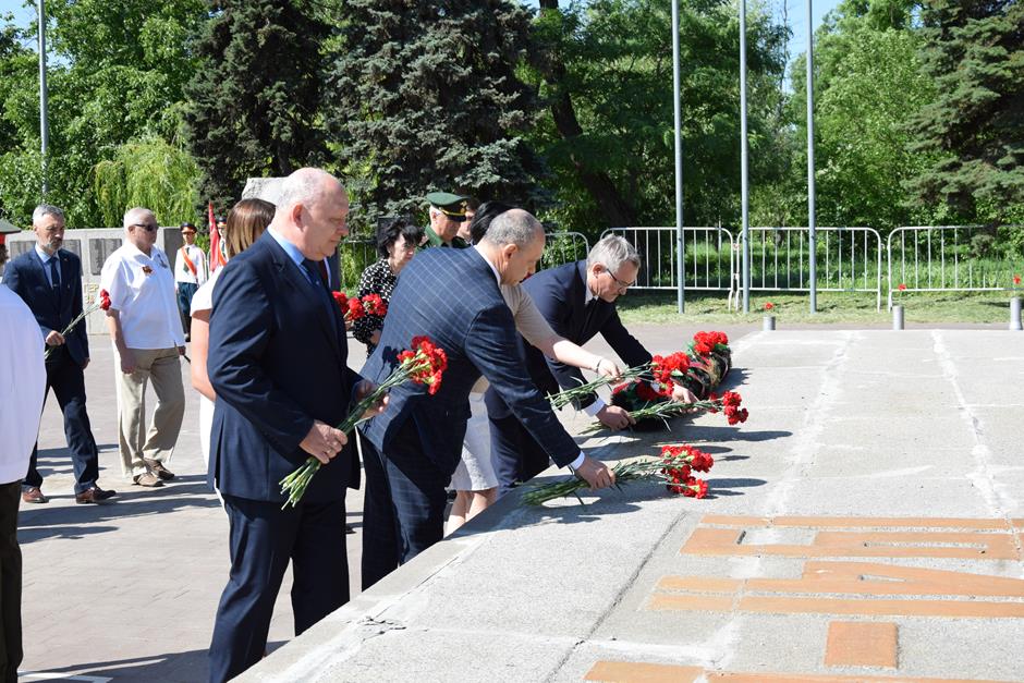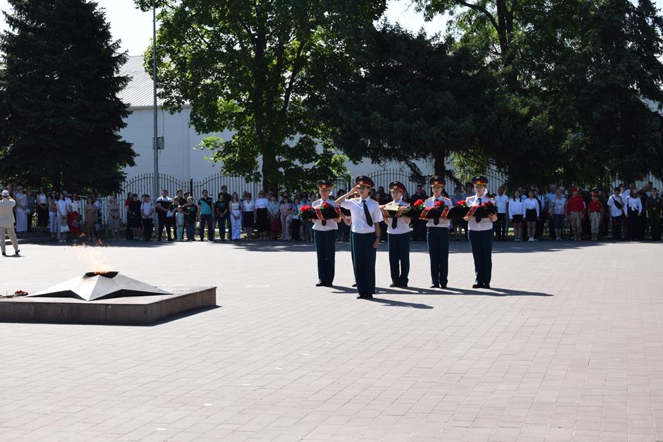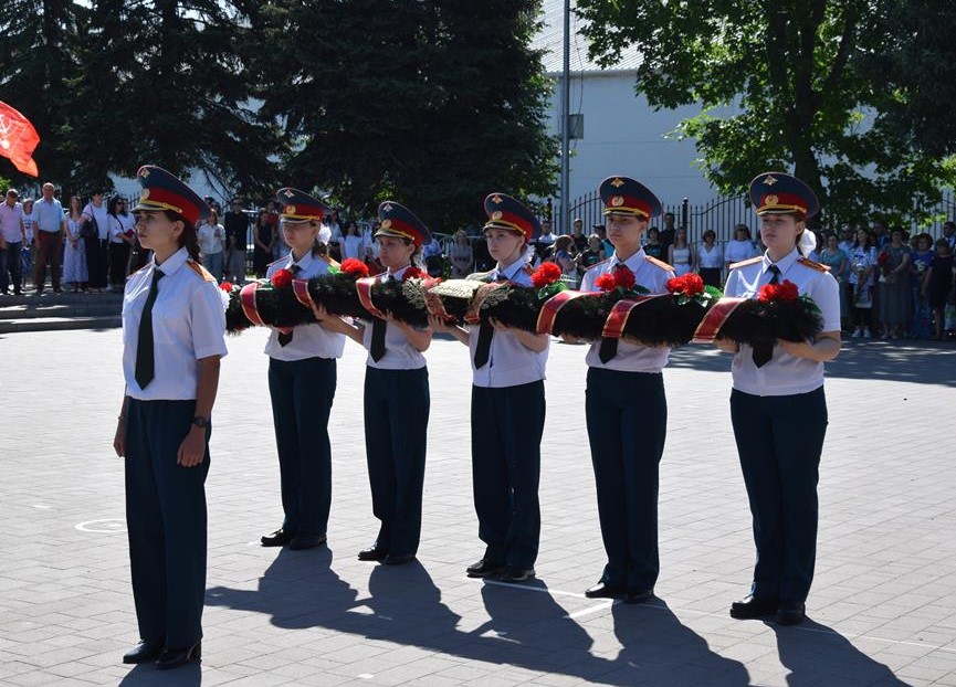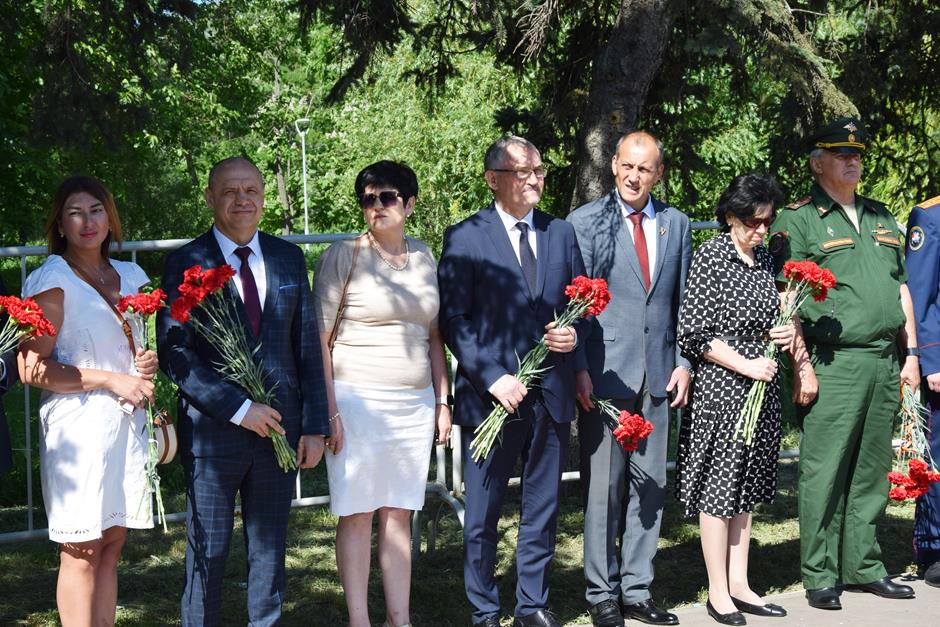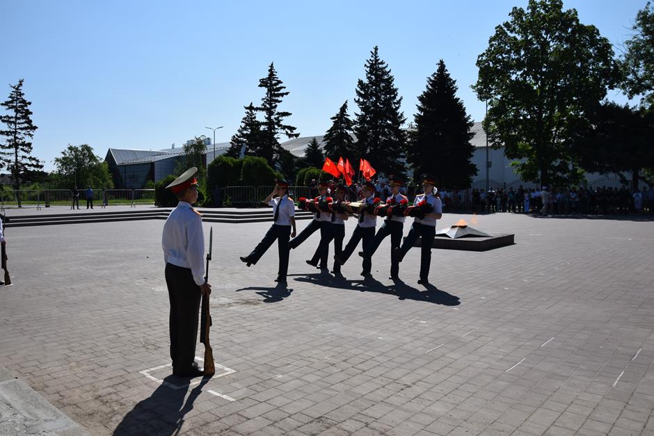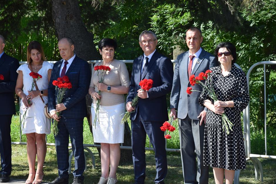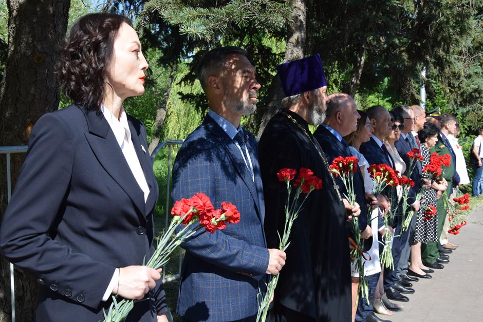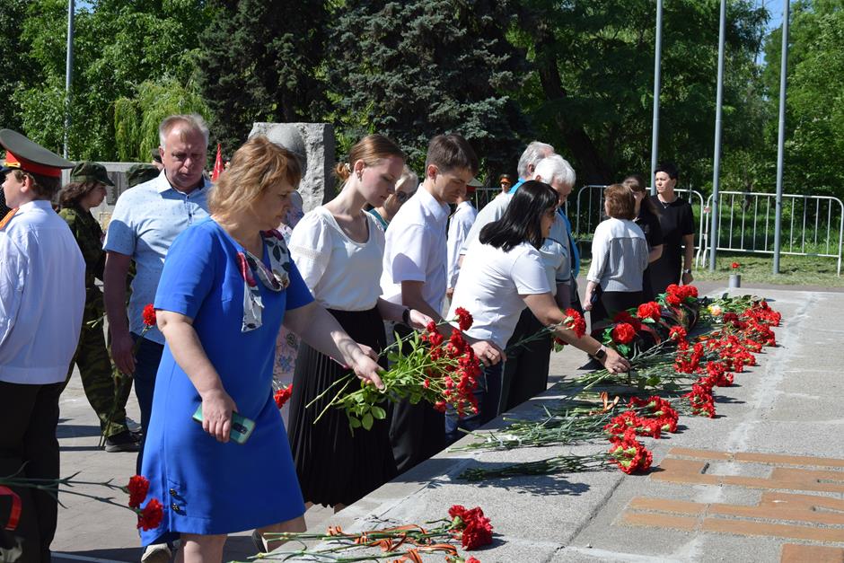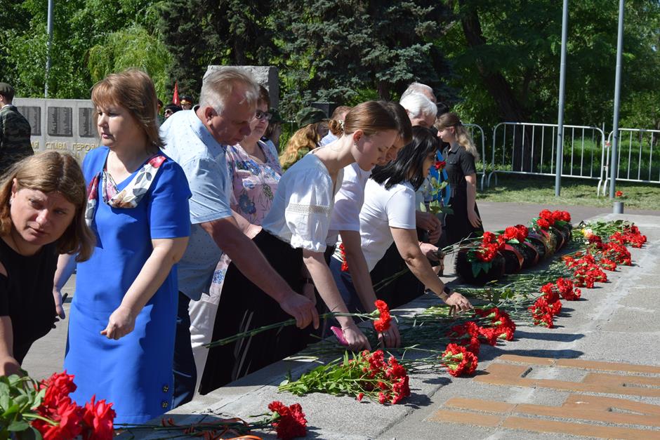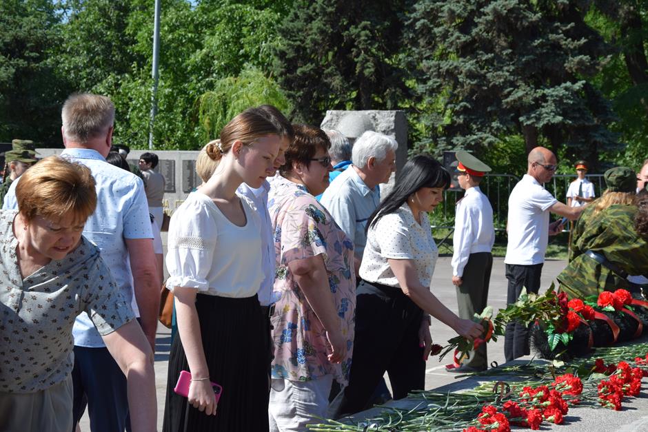 Памятьне вернувшихся с полей сражений и жертв Великой Отечественной войны почтили минутой молчания. К братской могиле возложили венки и цветы: в знак преклонения перед героическим наследием, мужествоми истинным патриотизмом защитников Отечества, награда которым — бессмертие.