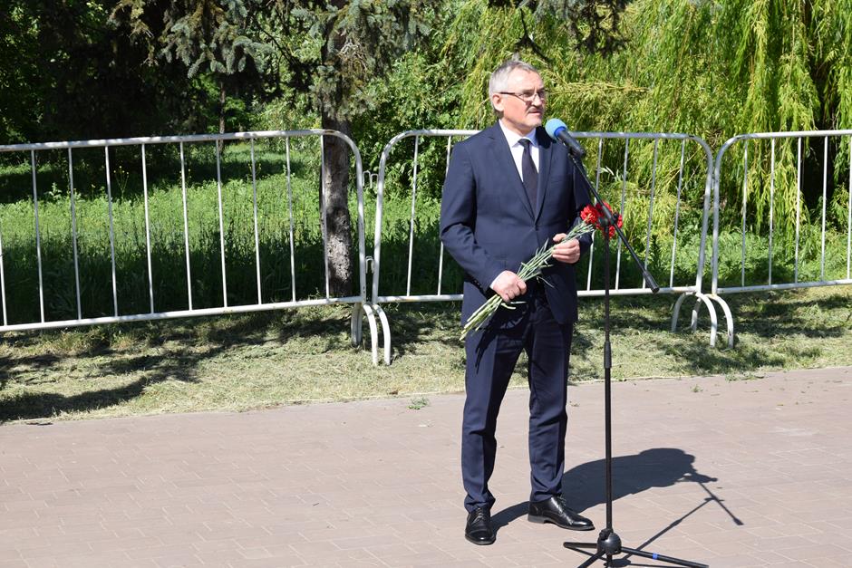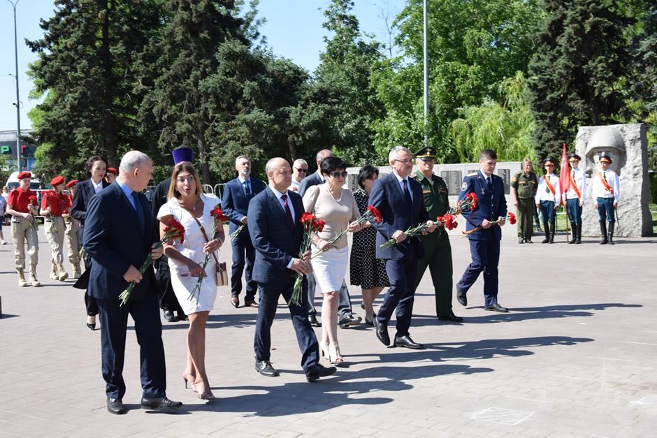 Великая Отечественная война – это десятки тысяч разрушенных и сожженных городов, посёлков и деревень в нашей стране. Это 32 тысячи взорванных заводов и фабрик, 65 тысяч километров железнодорожных путей. И 27 миллионов оборванных жизней. Памяти героев Великой Победы посвятили шахтинцы митинг скорби на мемориальном комплексе в Александровском парке. О долге помнить и чтить завоевание советского народа, историю нашей страны, подвиг каждого героя говорили, обращаясь к собравшимся, исполняющий обязанности председателя городской Думы — главы города Шахты Константин Корнеев, глава Администрации города Андрей Горцевской, военный комиссар по городу Шахты и Октябрьскому району Иван Вансович.