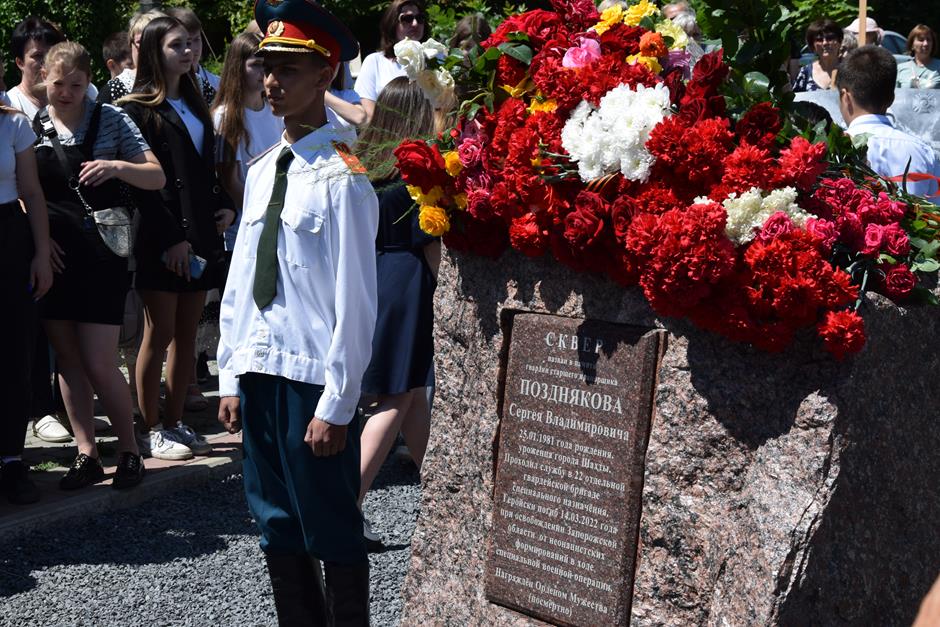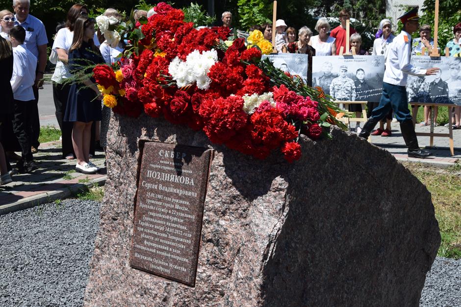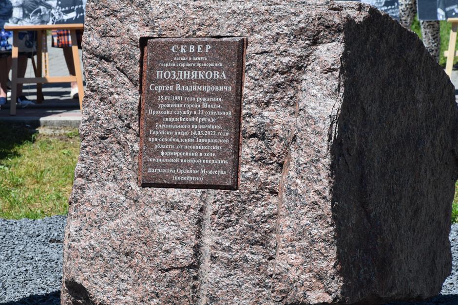 22 июня в Шахтах состоялось открытие постамента памяти участника СВО Сергея Позднякова в сквере, названном в его честь