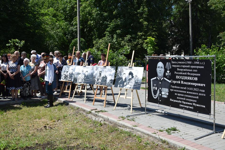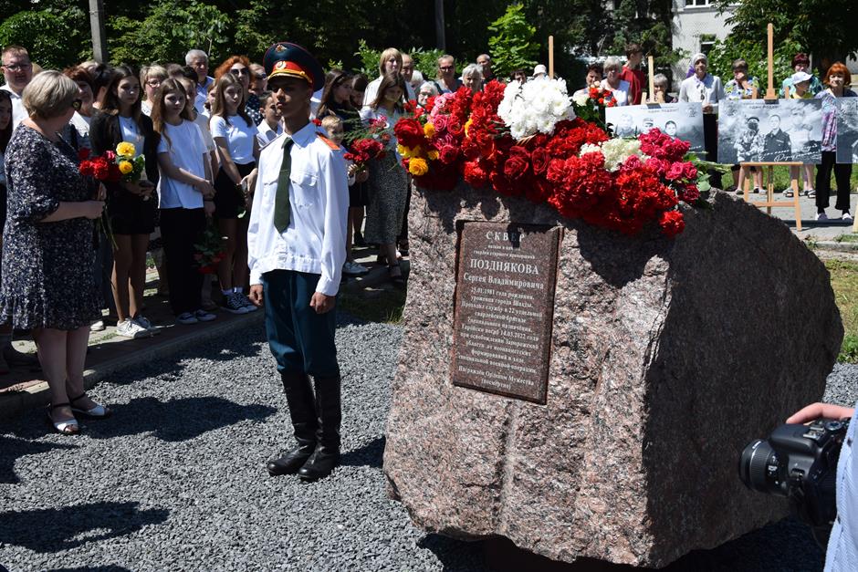 Его жизненный и боевой путь — пример для нынешнего и будущих поколений. Об этом говорили выступавшие, выражая соболезнование родным героя и благодарность за его подвиг. В торжественной церемонии открытия постамента памяти Сергея Позднякова приняли участие исполняющий обязанности председателя городской Думы — главы города Шахты Константин Корнеев, глава Администрации города Андрей Горцевской, военный комиссар по городу Шахты и Октябрьскому району Иван Вансович, заместитель командира 22 гвардейской, Ордена Жукова, отдельной бригады специального назначения по военно-политической работе Владимир Серегин, депутаты городской Думы Тенгиз Хиникадзе и Андрей Ермаков, исполнительный секретарь ШМО ВПП «ЕДИНАЯ РОССИЯ» Эльвира Мусаева, председатель Общественной палаты города Александр Скориков, представители городских общественных организаций и СМИ.