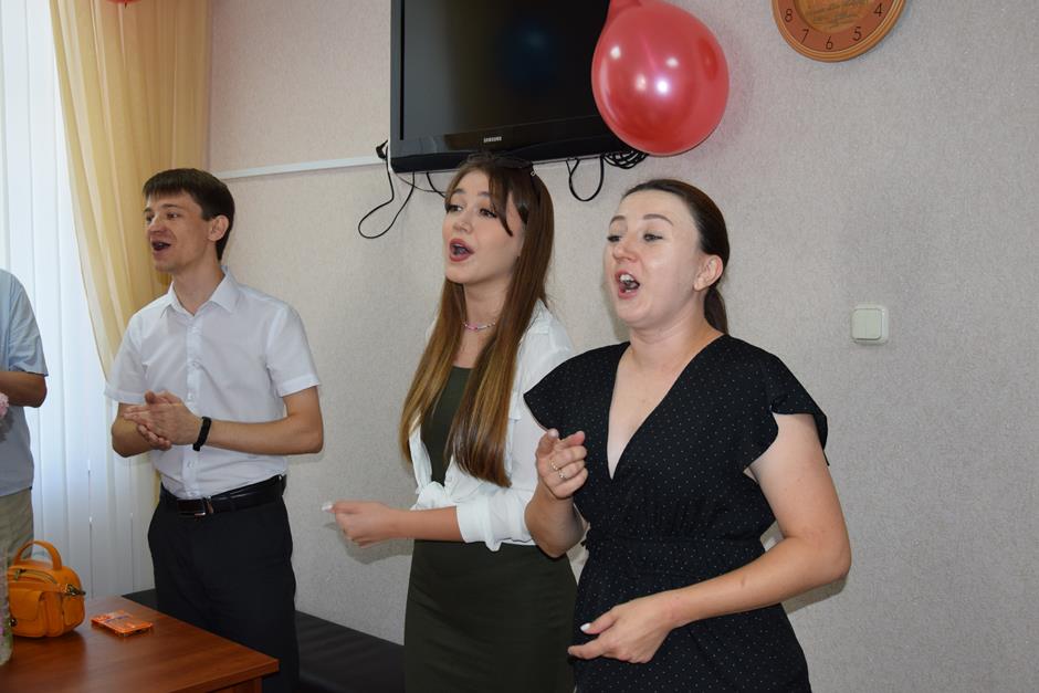Члены Молодежного парламента при городской Думе города Шахты под руководством председателя Андрея Ткачева также приехали в гости не с пустыми руками, а еще подготовили для Петра Георгиевича вокальный подарок: фронтовая и любимая многими «Смуглянка» в исполнении Ольги Черновой и Марии Нюхало звучала особенно проникновенно и празднично. Сюрприз пришелся по душе, и собравшиеся активно поддержали творческую импровизацию молодежи, с удовольствием вспомнив слова знаменитой песни.
