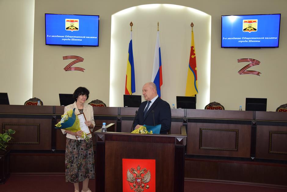Заседание открыла процедура вручения наград. Почетных грамот Общественной палаты города Шахты удостоены: