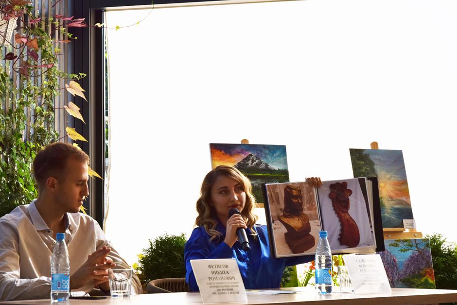 — Вероника Самбурова — юная художница, организатор собственной выставки «Дар Рода», активная участница волонтерского движения.