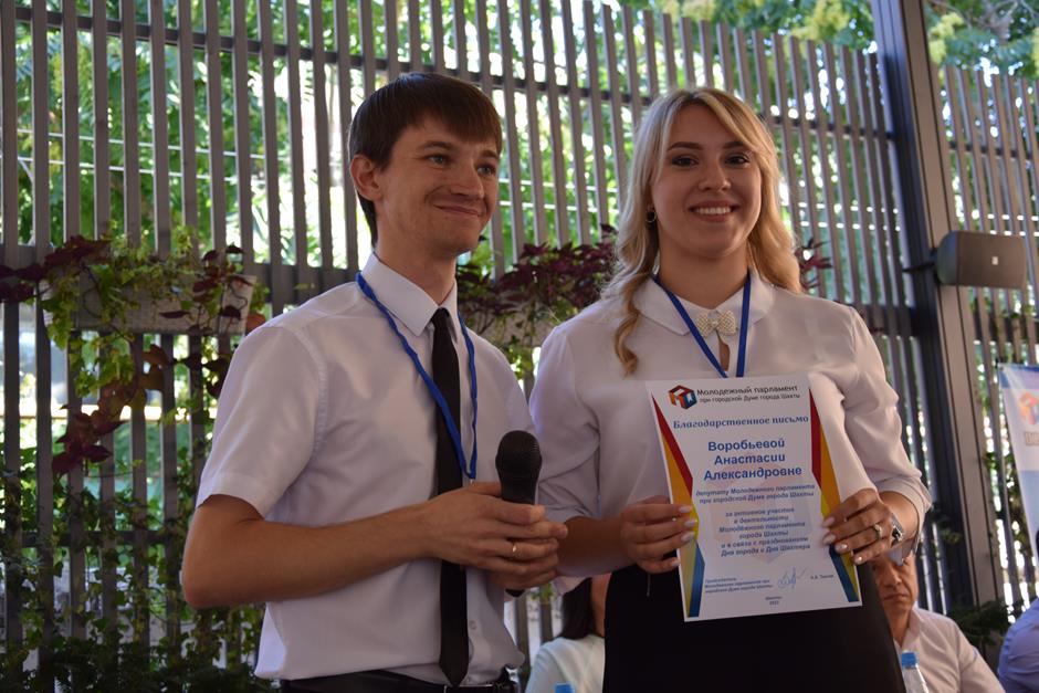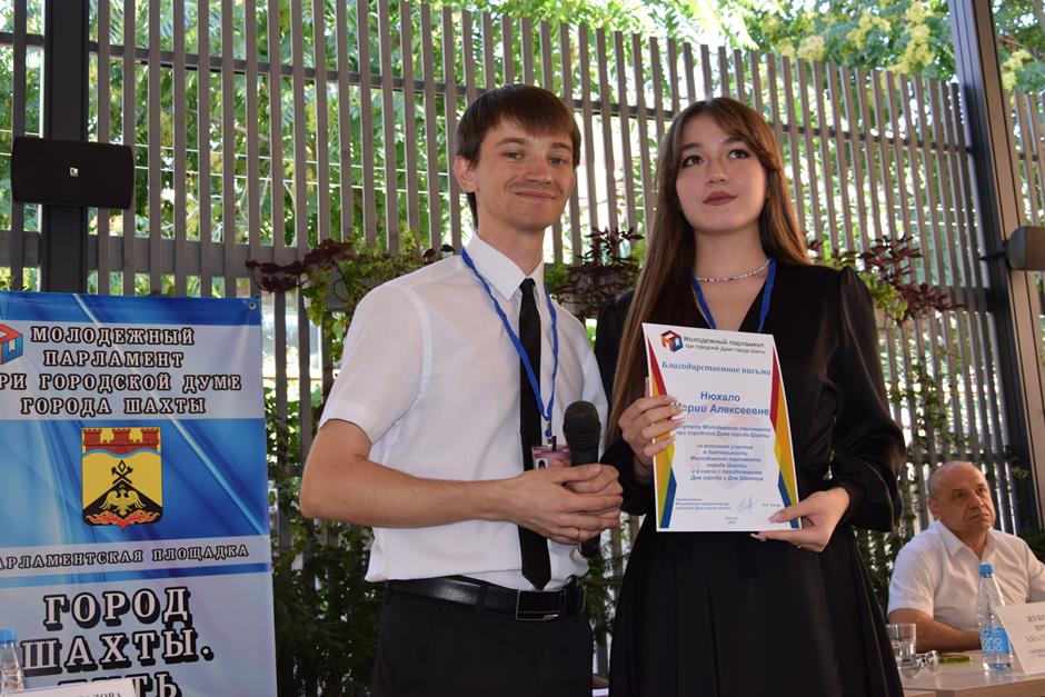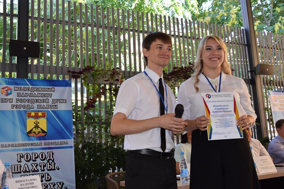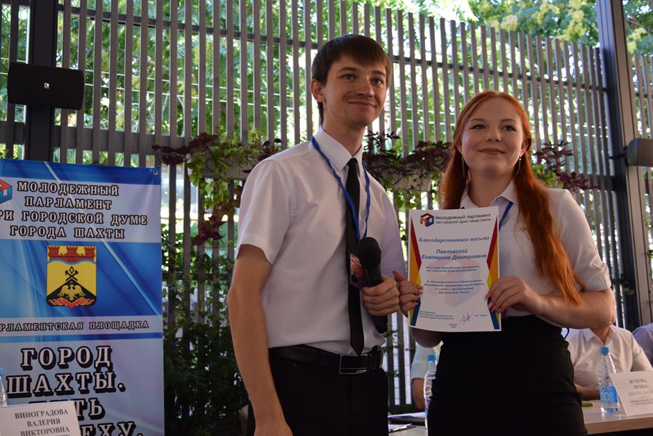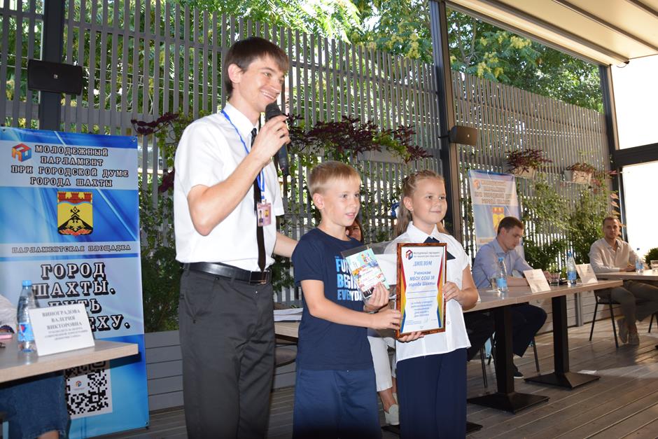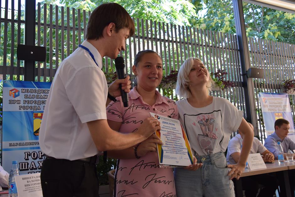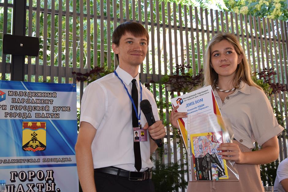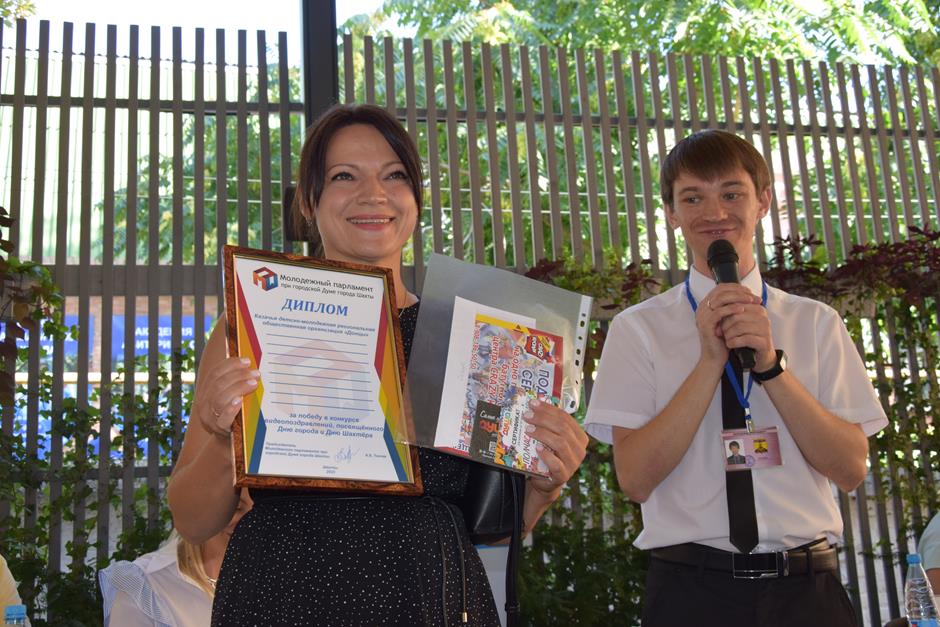 И уже по традиции встречу завершила церемония награждения победителей конкурса видеороликов-поздравлений города с его главными праздниками, организованного Молодежным парламентом при городской Думе города Шахты при поддержке депутата городской Думы, члена исполнительного комитета МПШ Вадима Новоселова. Лучших поощрили дипломами и призами — за яркие, творческие, креативные работы, посвященные любимому городу Шахты.