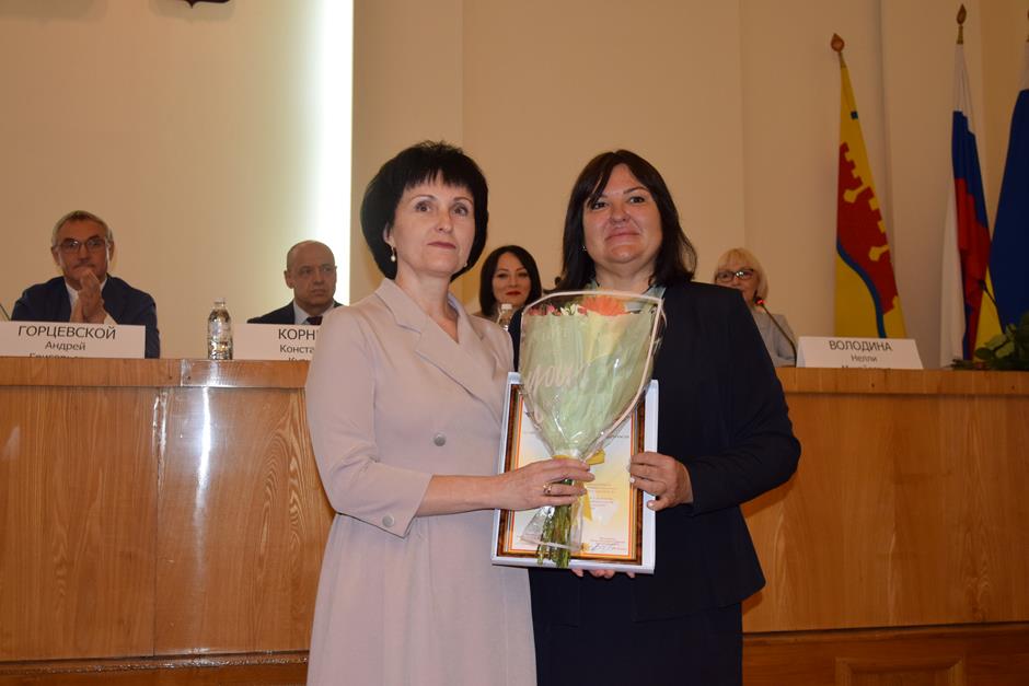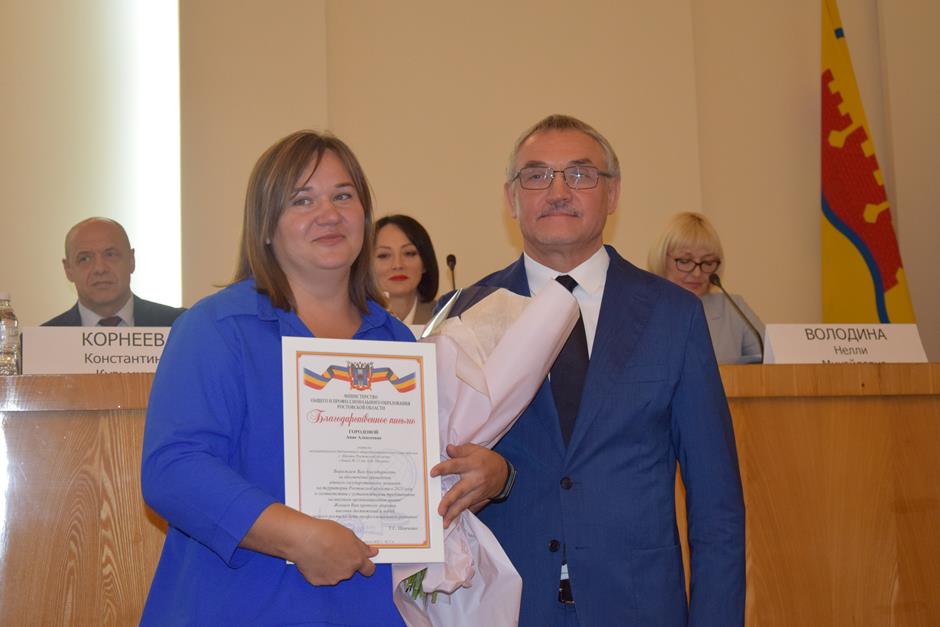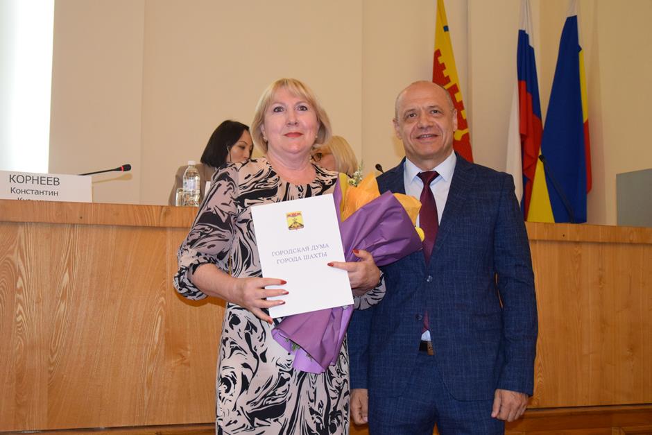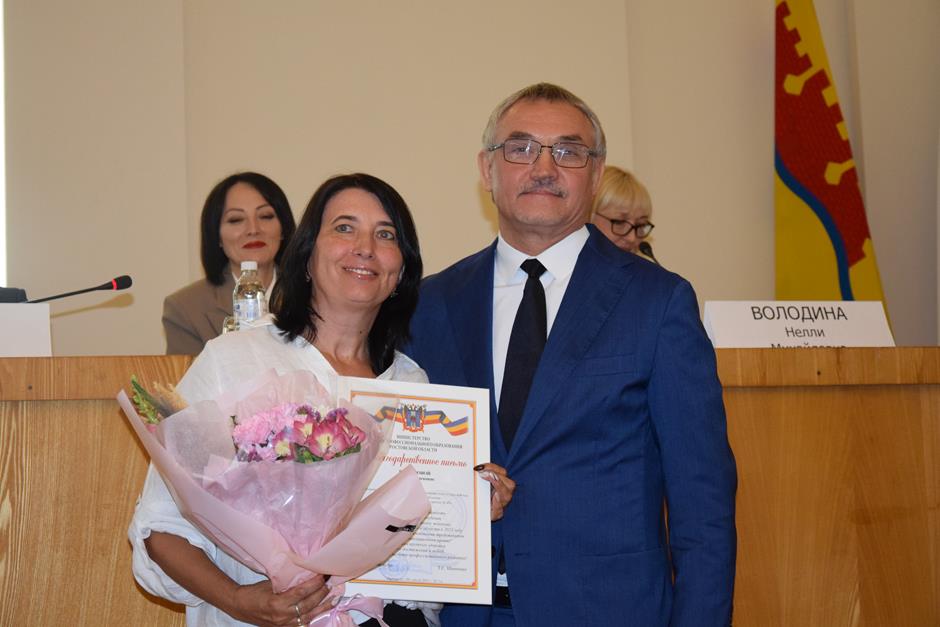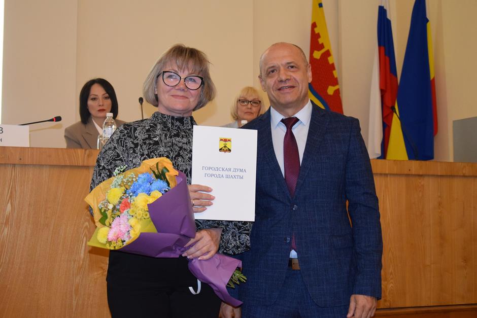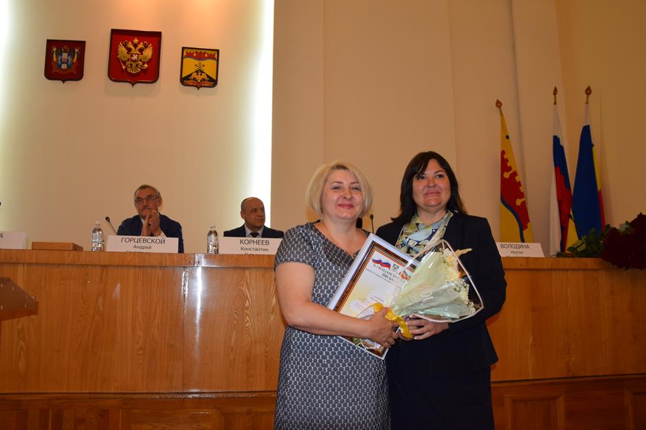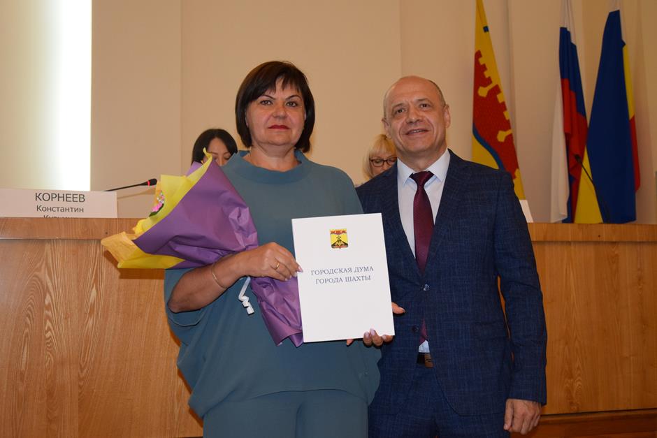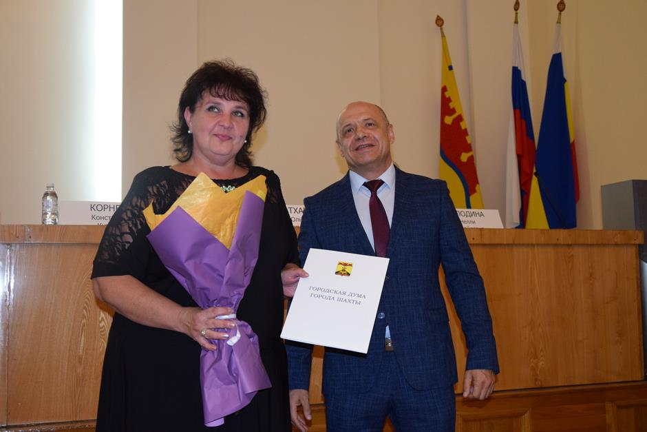 На основные стратегические ориентиры развития российской системы образования и задачи, стоящие перед шахтинской системой образования, обратила внимание директор профильного Департамента Нелли Володина. Выступив перед коллегами, она продолжила церемонию награждения. Поздравления прозвучали также от председателя местного отделения