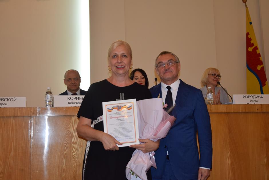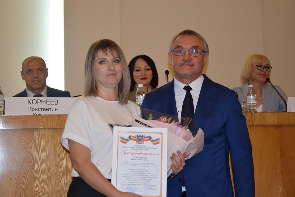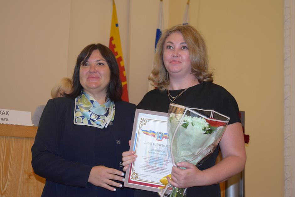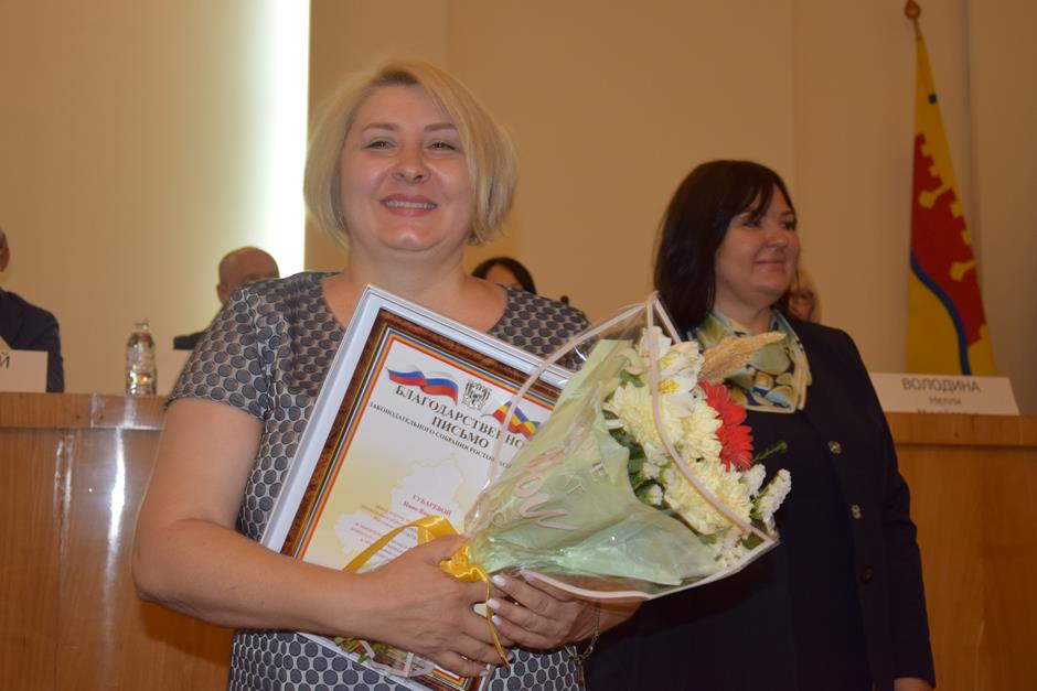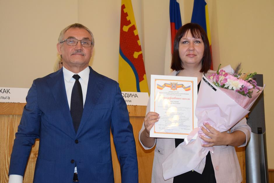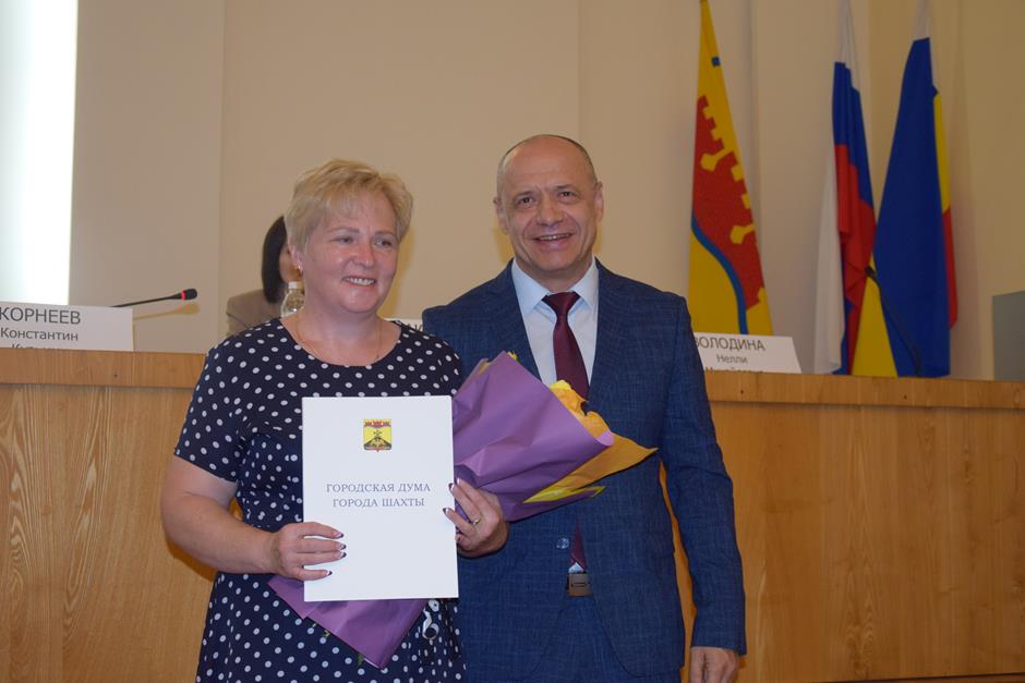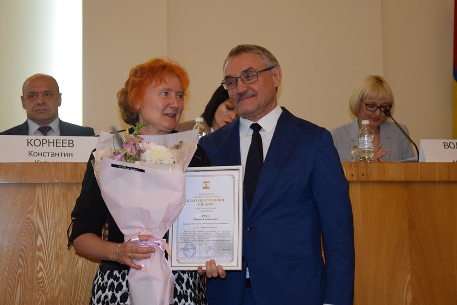 На основные стратегические ориентиры развития российской системы образования и задачи, стоящие перед шахтинской системой образования, обратила внимание директор профильного Департамента Нелли Володина. Выступив перед коллегами, она продолжила церемонию награждения. Поздравления прозвучали также от председателя местного отделения