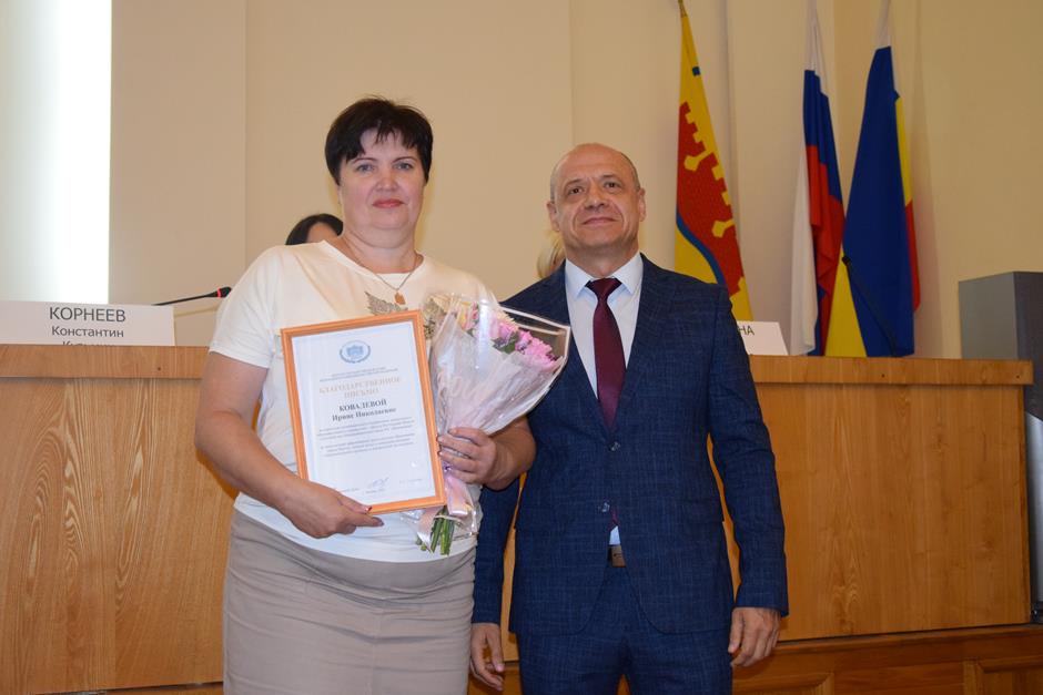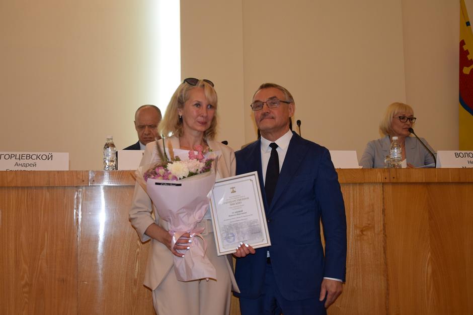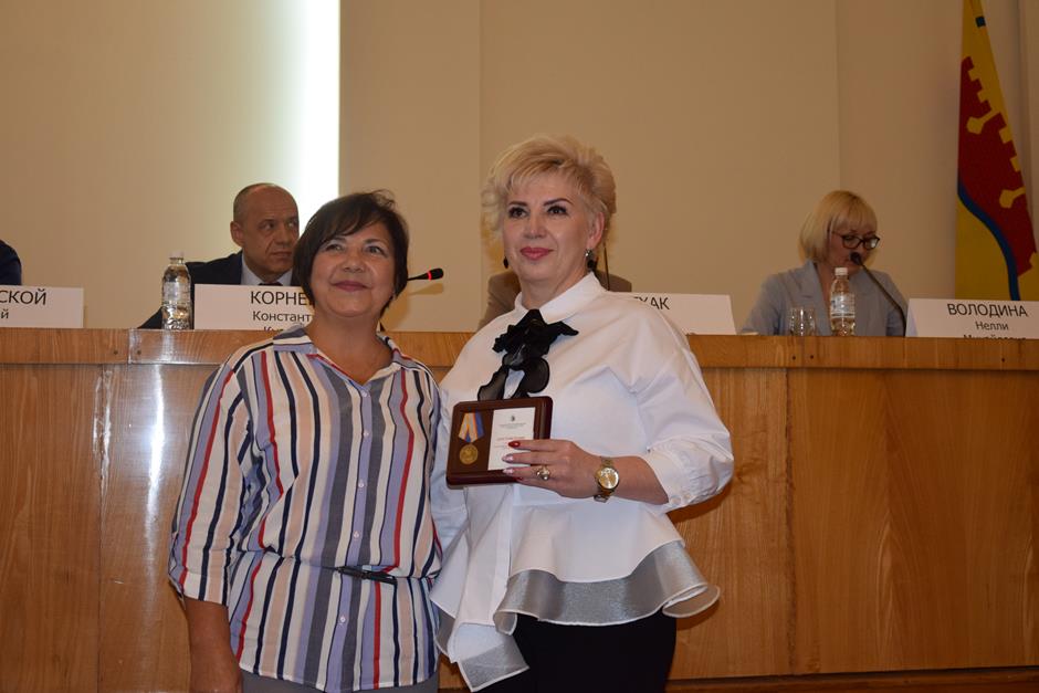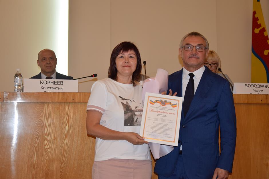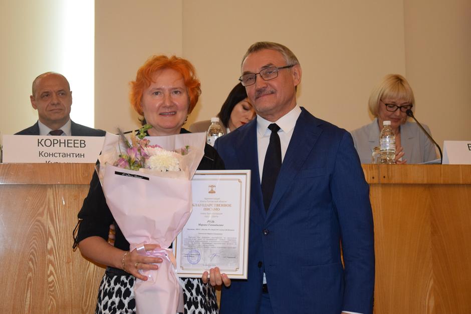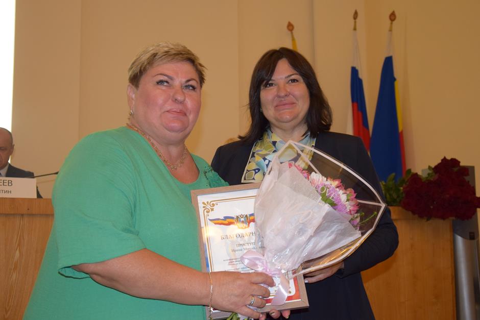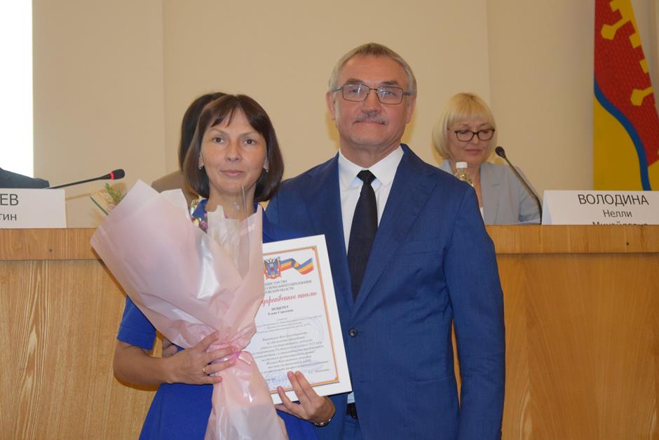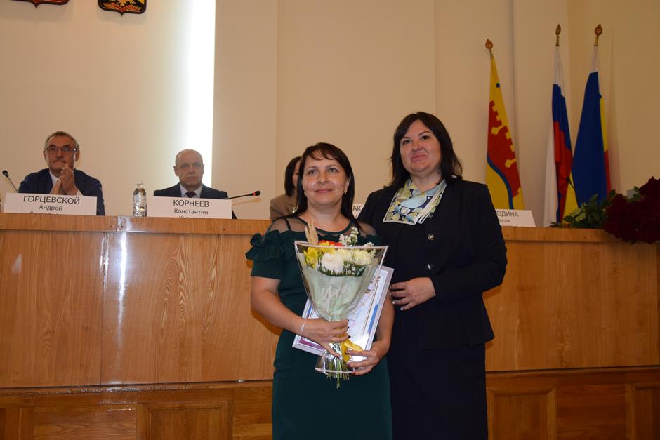 На основные стратегические ориентиры развития российской системы образования и задачи, стоящие перед шахтинской системой образования, обратила внимание директор профильного Департамента Нелли Володина. Выступив перед коллегами, она продолжила церемонию награждения. Поздравления прозвучали также от председателя местного отделения