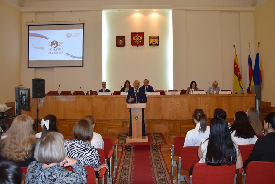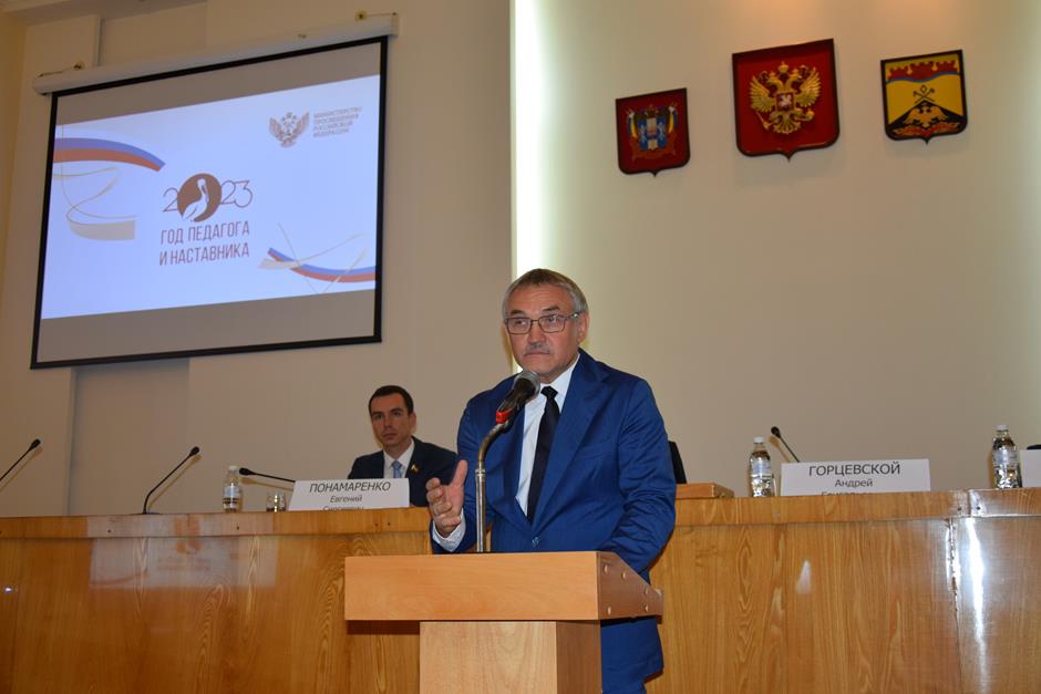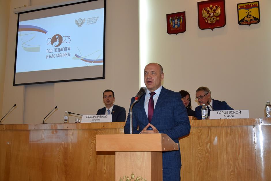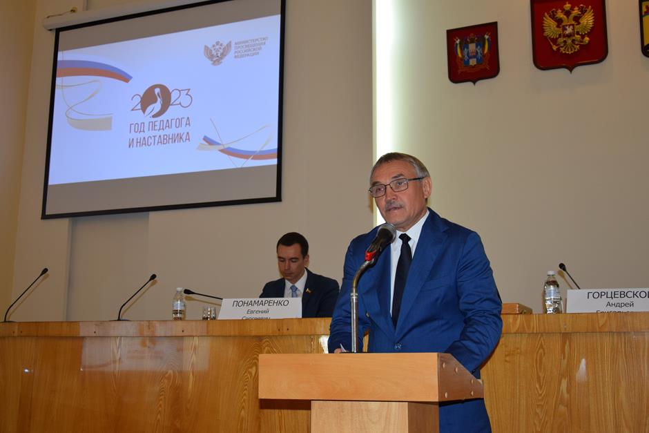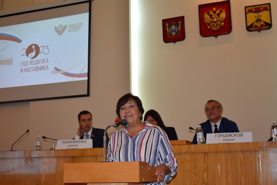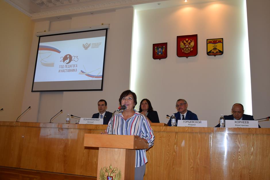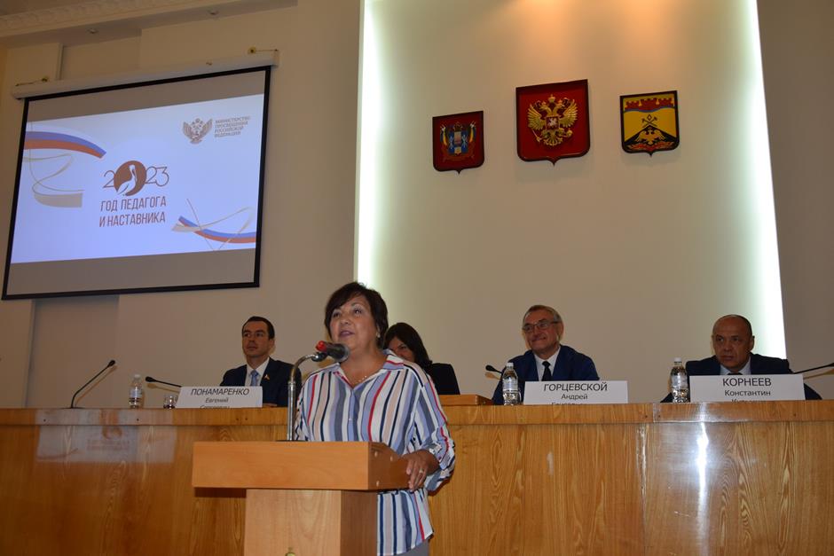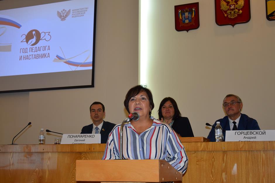 В преддверии 1 сентября педагогическое сообщество ежегодно обсуждает итоги учебного года, планы и задачи на новый период, актуальные вопросы и пути дальнейшего развития муниципальной системы образования. Традиционная августовская конференция в Год педагога и наставника стала в Шахтах событием особого статуса. Мероприятие прошло в празднично-деловой атмосфере. Перед собравшимися выступили, поблагодарили их за труд и пожелали новых достижений в наступающем учебном сезоне председатель комитета ЗСРО по взаимодействию с общественными объединениями, молодежной политике, физической культуре, спорту и туризму Ирина Жукова, депутат Законодательного Собрания Ростовской области Евгений Понамаренко, и.о. председателя городской Думы – главы города Константин Корнеев, глава Администрации Андрей Горцевской. Заслуги учителей, воспитателей, педагогических коллективов, ветеранов профессии были отмечены многочисленными поощрениями федерального, областного и муниципального уровней. Константин Корнеев также вручил награды депутат Государственной Думы России Екатерины Стенякиной.